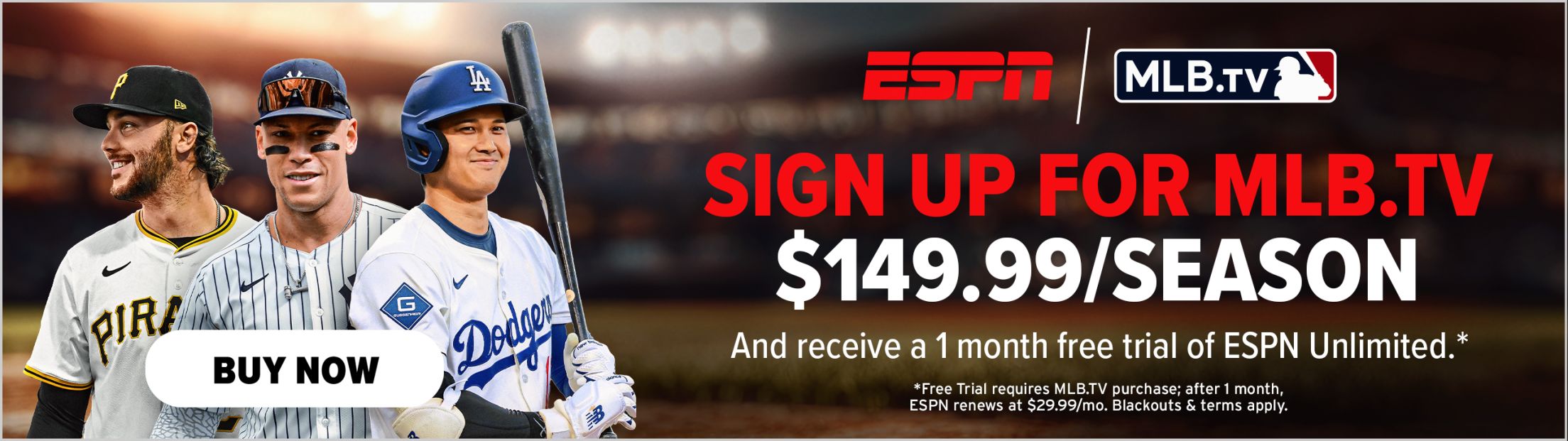 Here's everything you need to know about where and how to watch MLB.TV this season, including access via the MLB App or the ESPN App as well as in-market, blackout-free streaming subscriptions for 21 of MLB's 30 clubs.