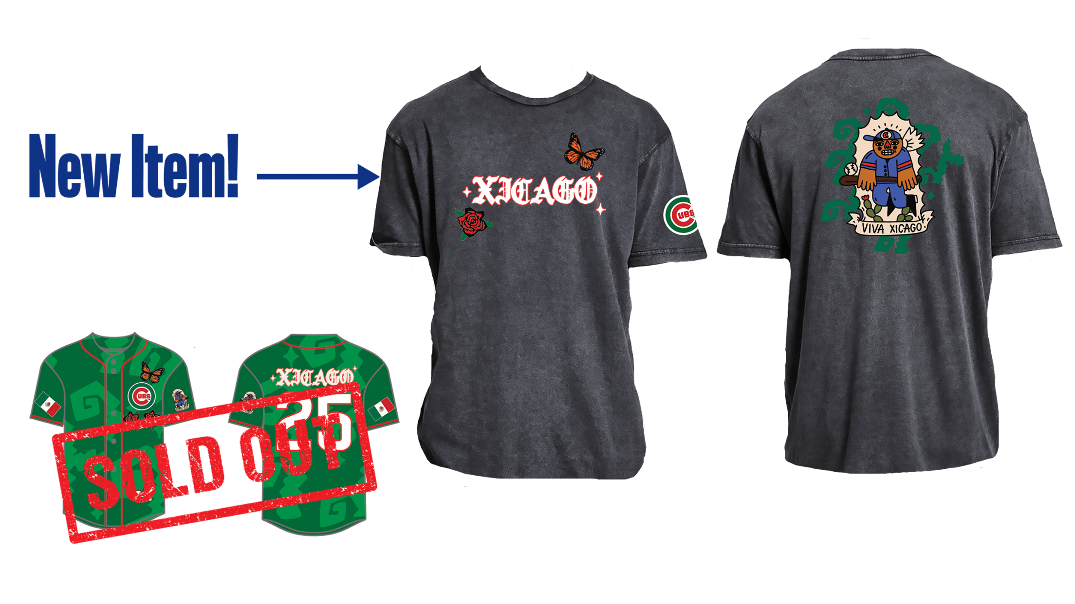 Join us at Wrigley Field Tuesday, May 13, to celebrate Mexican heritage as the Cubs take on the Marlins. The limited-edition Cubs Mexican heritage jersey is now sold out, but a T-shirt designed by Chicago-based artist Sentrock (@sentrock) is now available as part of the Special Ticket Offer paired with a ticket to the game! T-shirts will be offered in sizes M, XL and XXL, and available on a first-come, first-served basis.