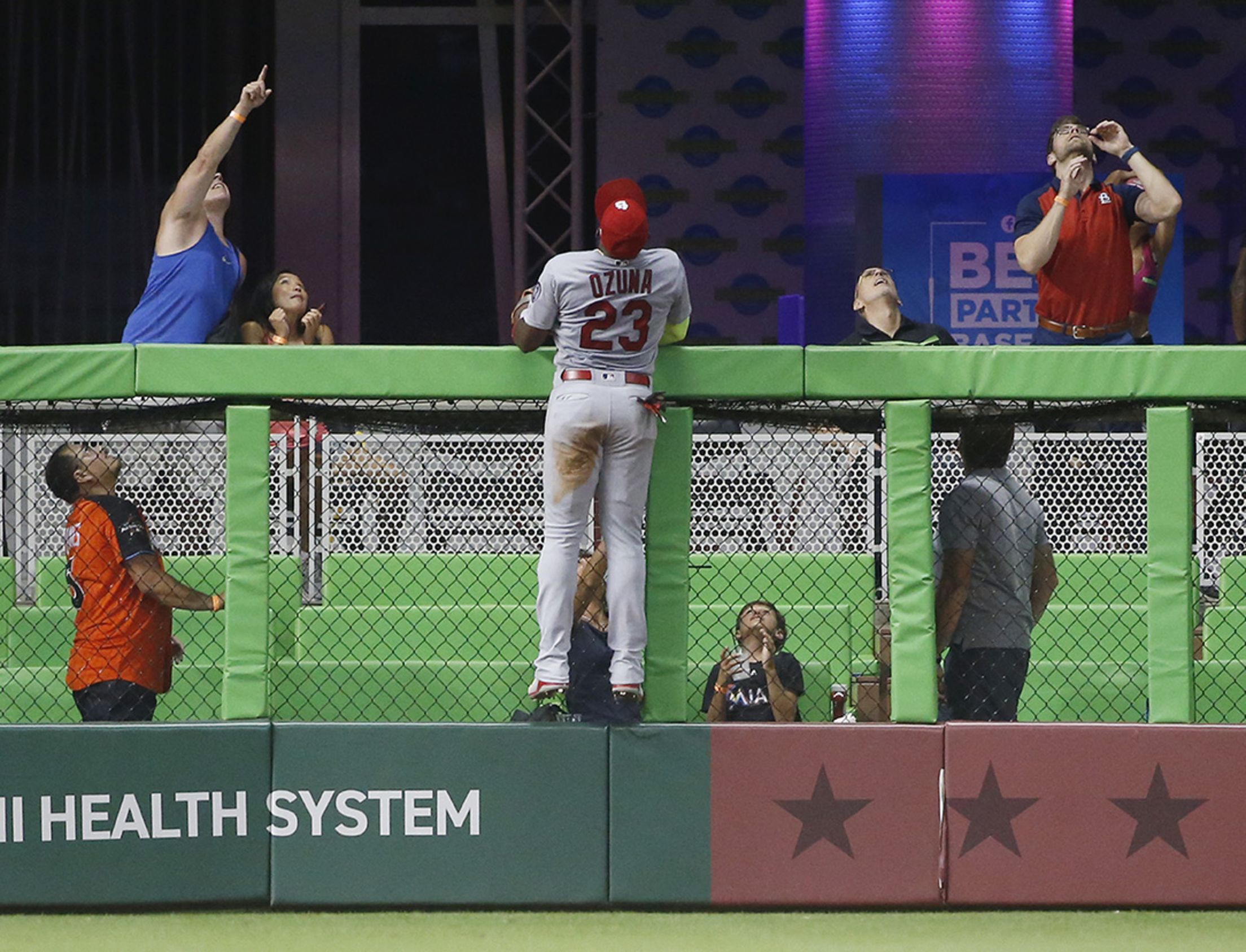 Monday, Aug. 6, at Miami - Marlins 2, Cardinals 1: In five seasons with Miami, Marcell Ozuna saw almost everything one could see from the outfield at Marlins Park. As a Cardinal, he experienced a first - watching a Marlins home run (Starlin Castro's game-deciding shot) sail to the point of no return. (Associated Press)