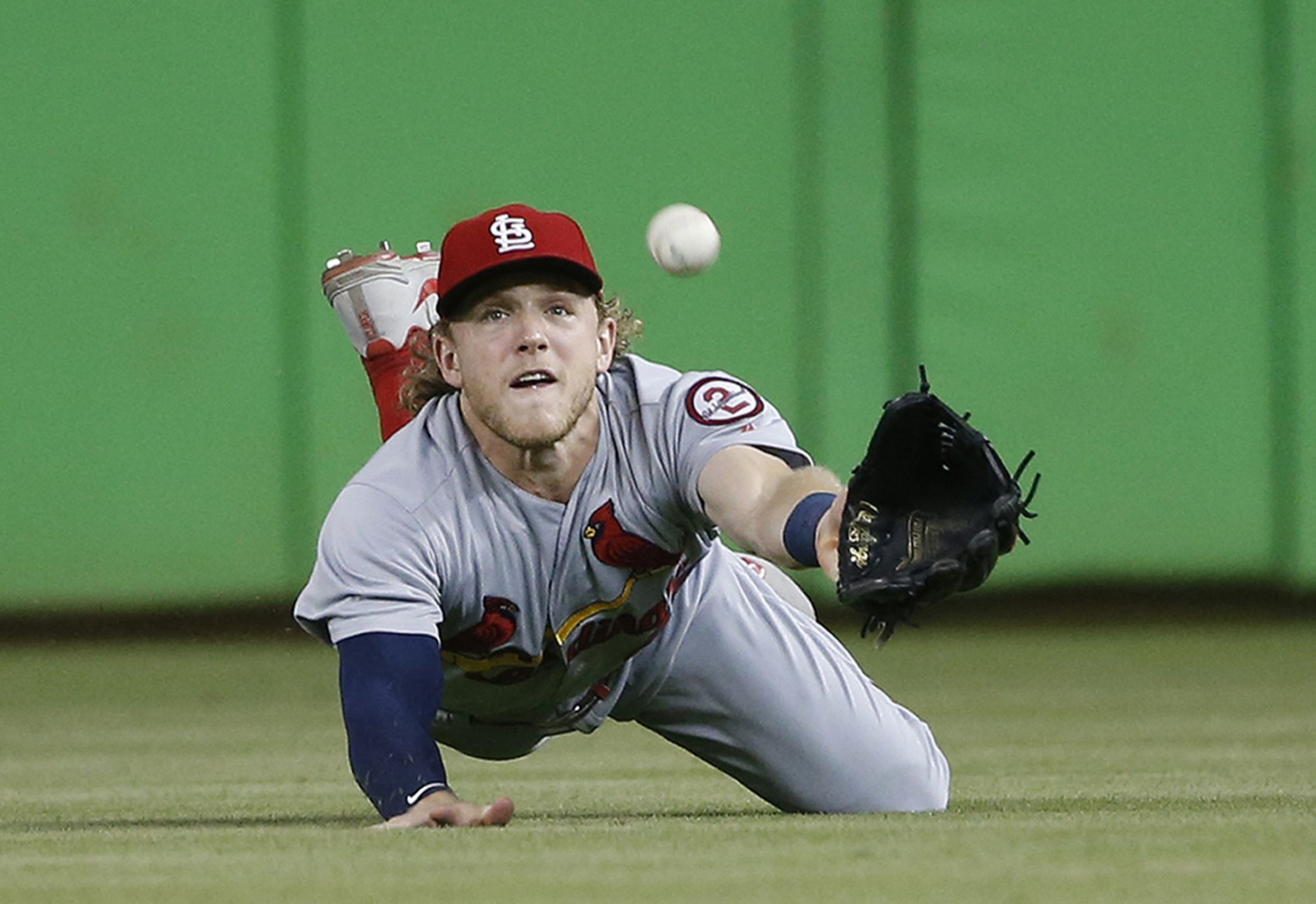 Tuesday, Aug. 7, at Miami - Cardinals 3, Marlins 2: Harrison Bader's defense in center kept the bases clean for rookie reliever Dakota Hudson as St. Louis clung to a one-run lead early in the eighth. (Associated Press)