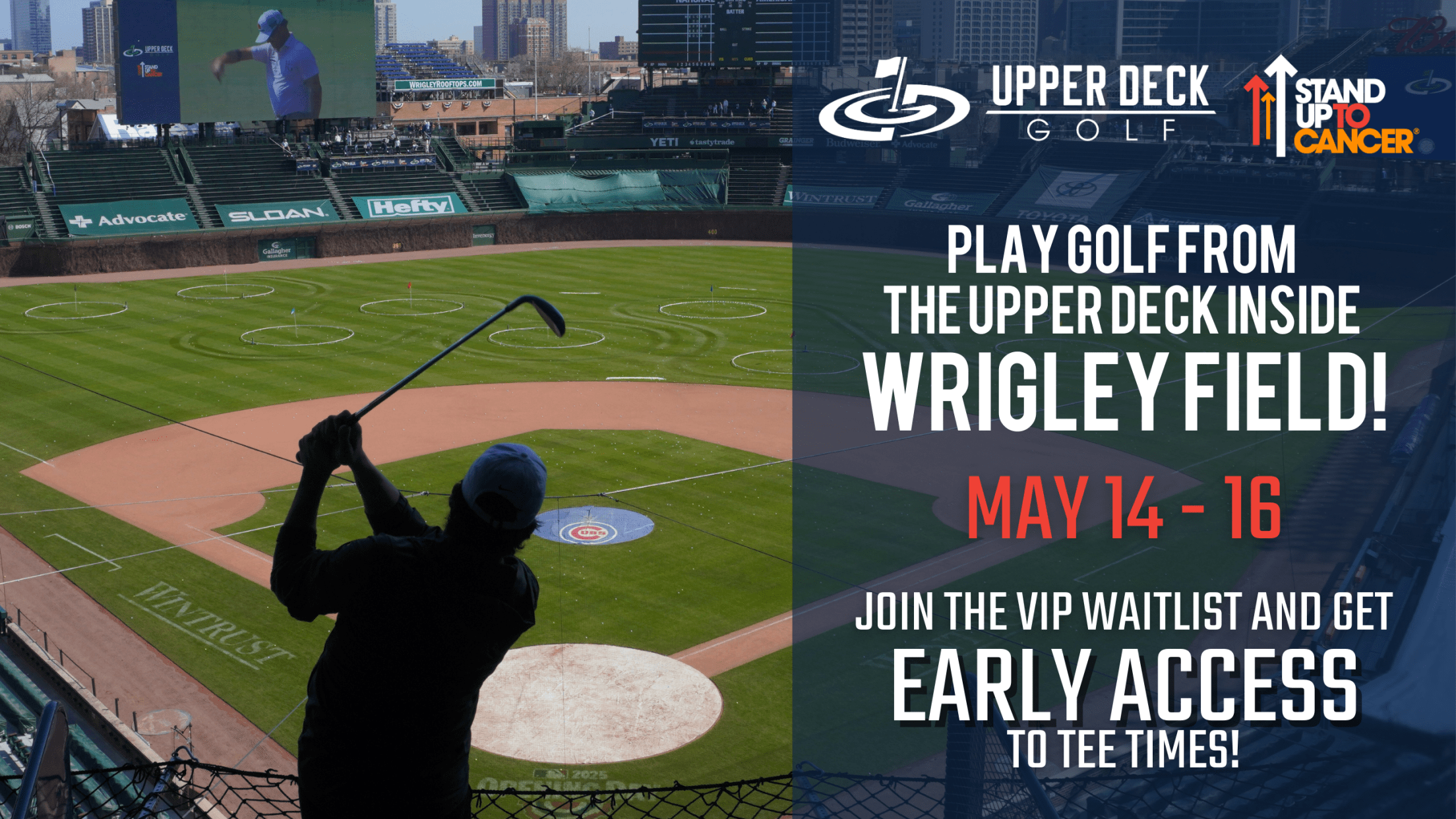 Tee off at Wrigley Field with Upper Deck Golf May 14-16! Enjoy a unique golfing experience inside the ballpark by hitting tee shots from nine different locations throughout the Friendly Confines. Tee times go on sale to the general public at 11 a.m. CT Thursday, April 16.