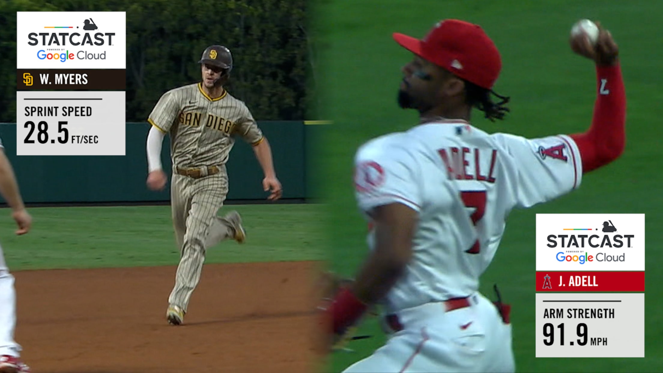 Statcast measures the exit velocity and projected distance of Mike Trout's 464-foot home run in the 1st