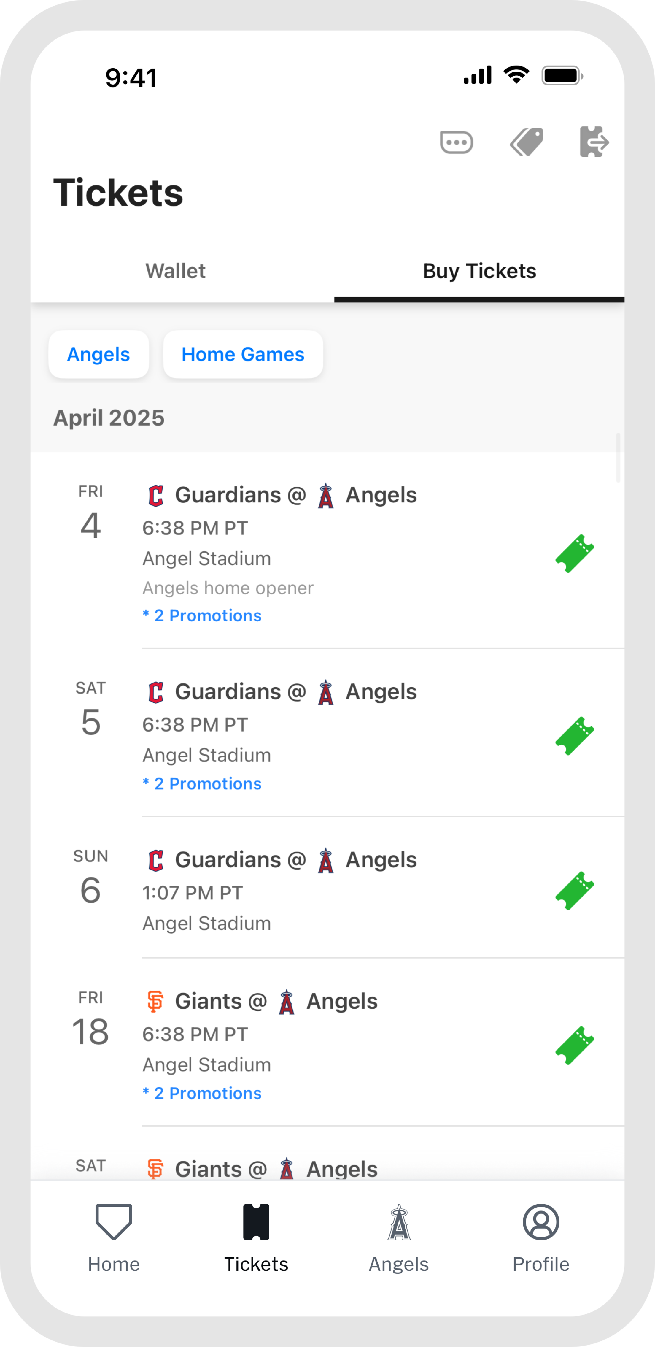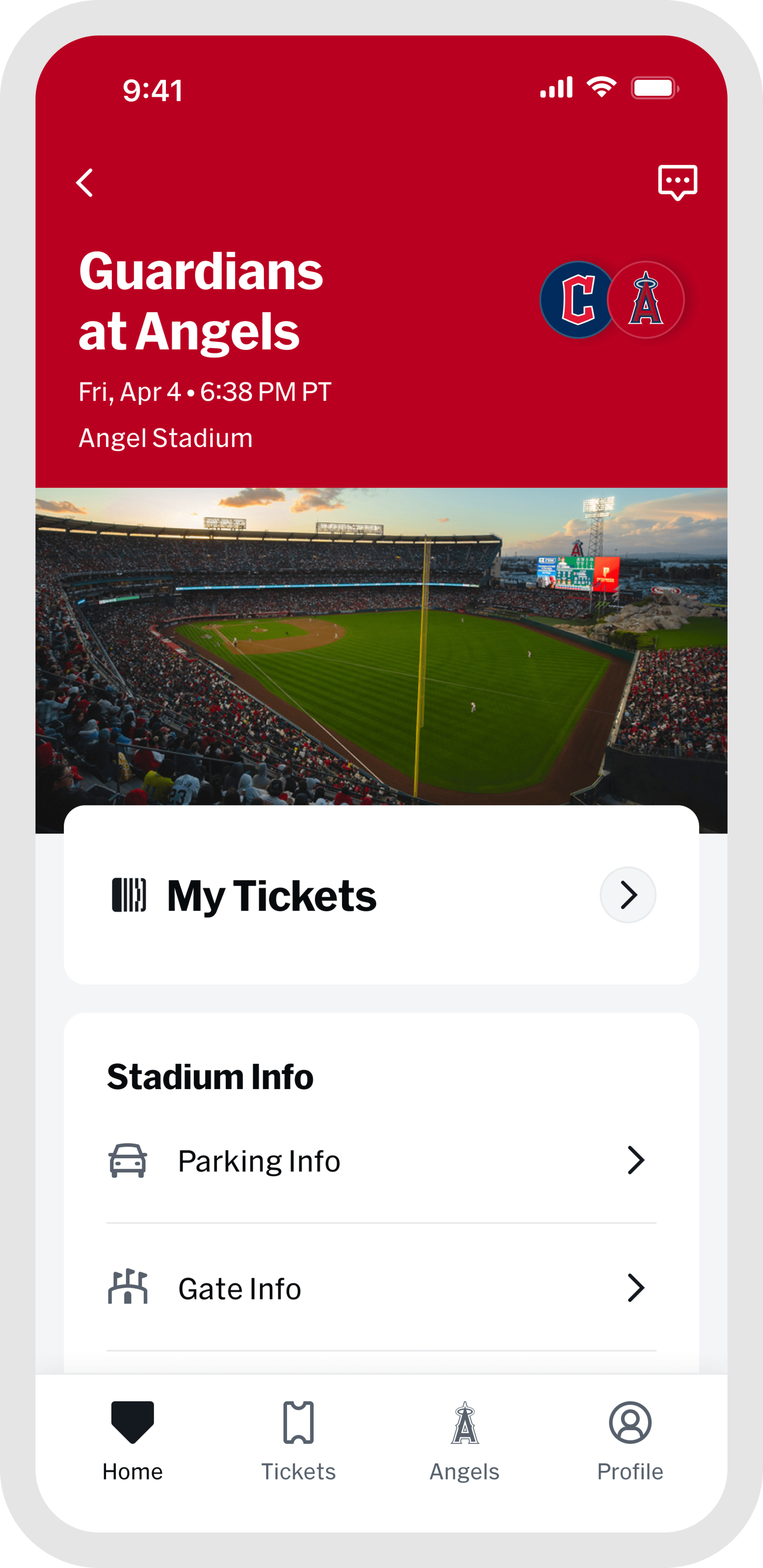 Once you arrive, the "Home" and "Angels" tabs become your go-to resource for venue details and features that enhance your gameday experience. Capture and preserve your ballpark memories by tapping "My History" within the "Profile" tab.