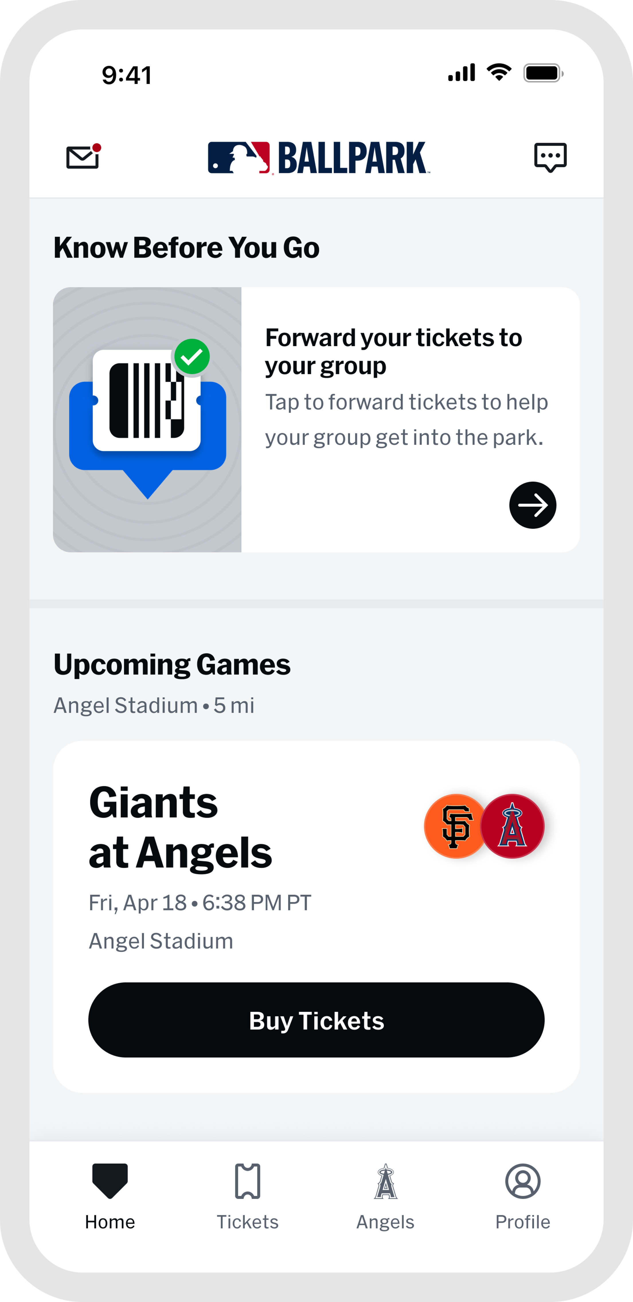 The MLB Ballpark app streamlines your gameday experience by keeping your digital tickets secure and accessible on your smartphone while helping you plan the perfect gameday. Easily manage, organize, and share your tickets with friends or family for smooth ballpark entry. Browse the full season schedule to find games with special promotions, and use detailed ballpark maps to locate your seats, discover the best food spots, and explore all the amenities Angel Stadium has to offer.