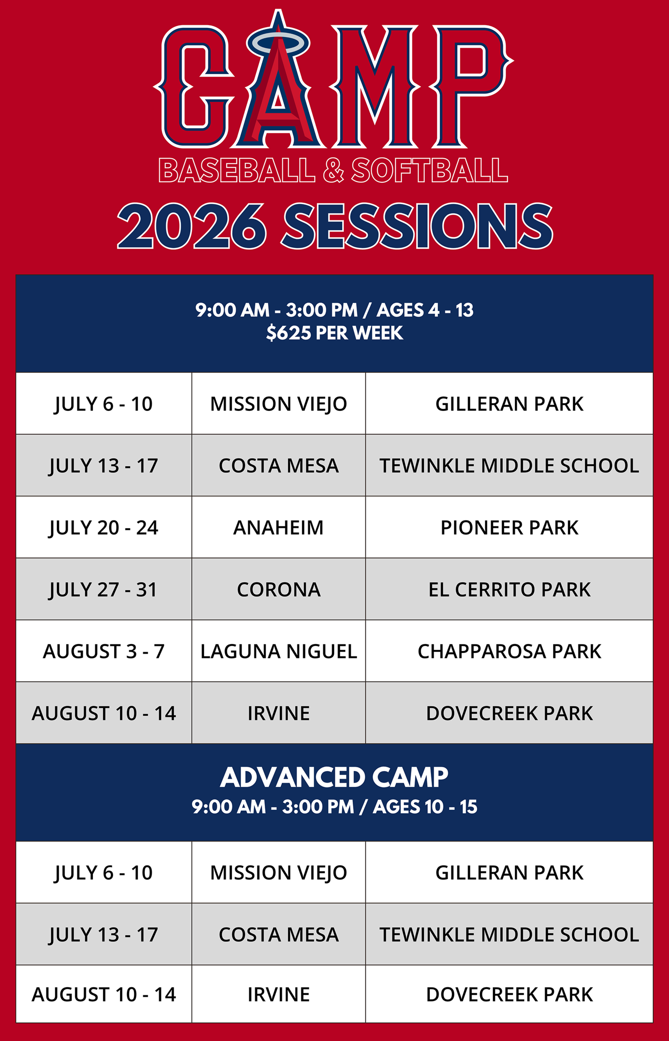 Join us this summer for our Angels Youth Baseball & Softball Camps, presented by Mountain Mike's Pizza, in Orange and Riverside counties for boys and girls ages 4-13! Featuring the highest caliber staff, Angels Baseball & Softball Camps are the perfect combination of baseball instruction, competition, and fun!