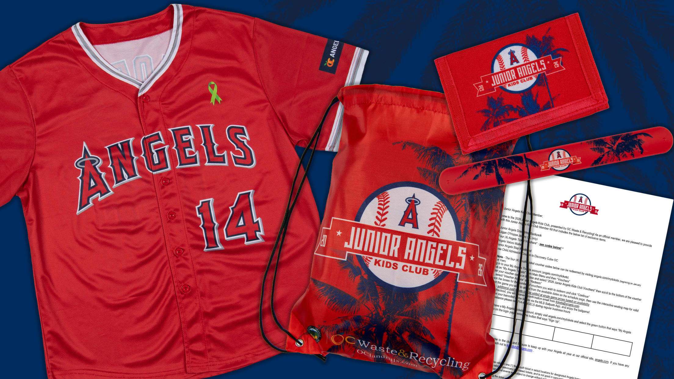 Register your little angel for the 2026 Junior Angels Kids Club, presented by OC Waste & Recycling! Purchase your Junior Angels Kids Club kit in person at the Angel Stadium Front Office for $20, or online for $22 (+shipping)!