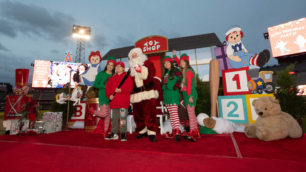 It’s the biggest charity party of the year for the Angels, who invite more than 450 local children to Angel Stadium in December for the annual Kids Holiday Party. Angel Stadium is transformed into a holiday village complete with snow and a visit from Santa Claus. It also features sledding stations, a speed-pitch station and carnival-style games.