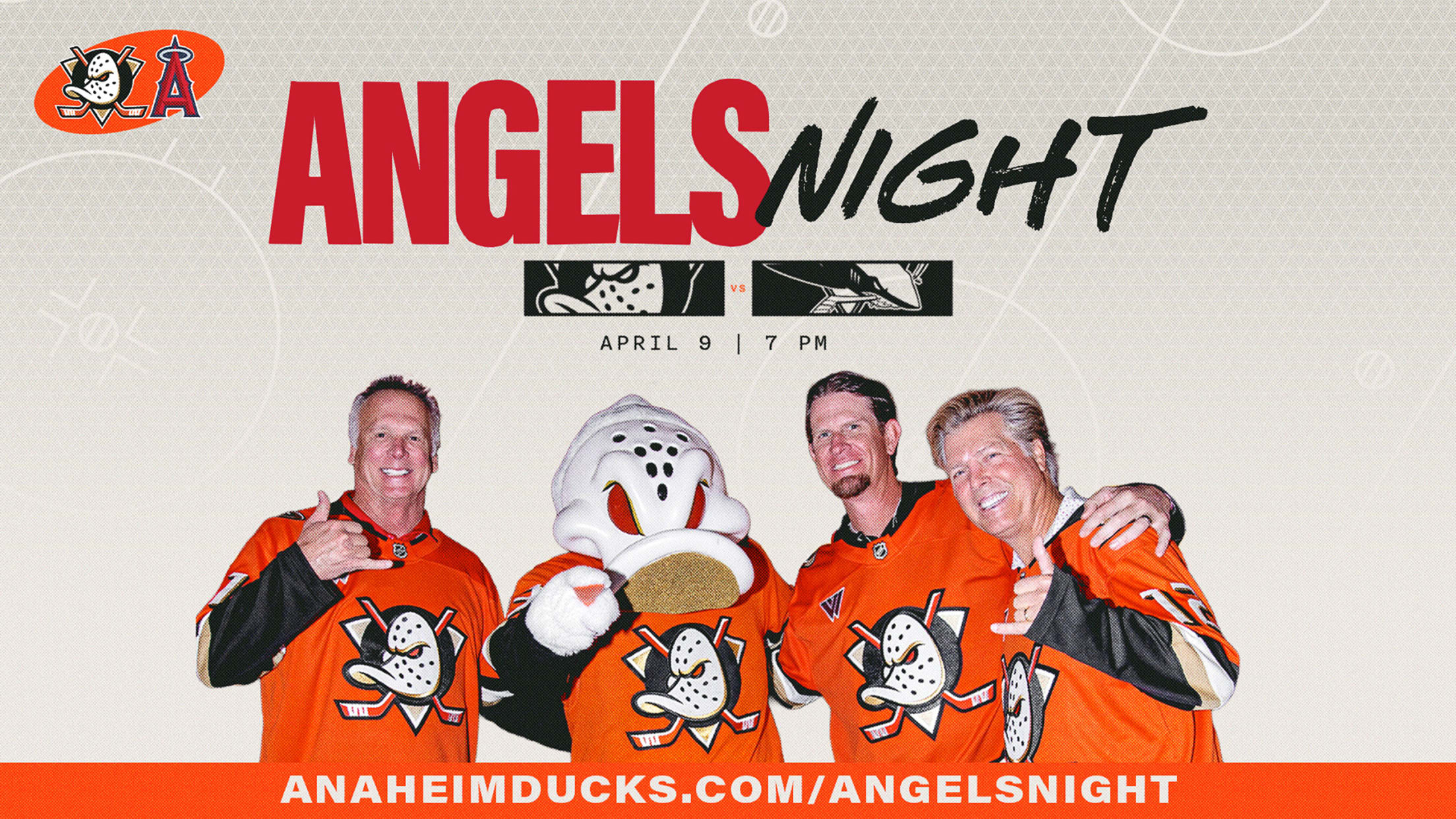 Angels and Ducks fly together! Celebrate the epic crossover between Angels Baseball and Ducks Hockey during Wild Wing’s Baseball Bonanza on Angels Night on Thursday, April 9th at Honda Center as the Ducks take on the San Jose Sharks at 7pm.