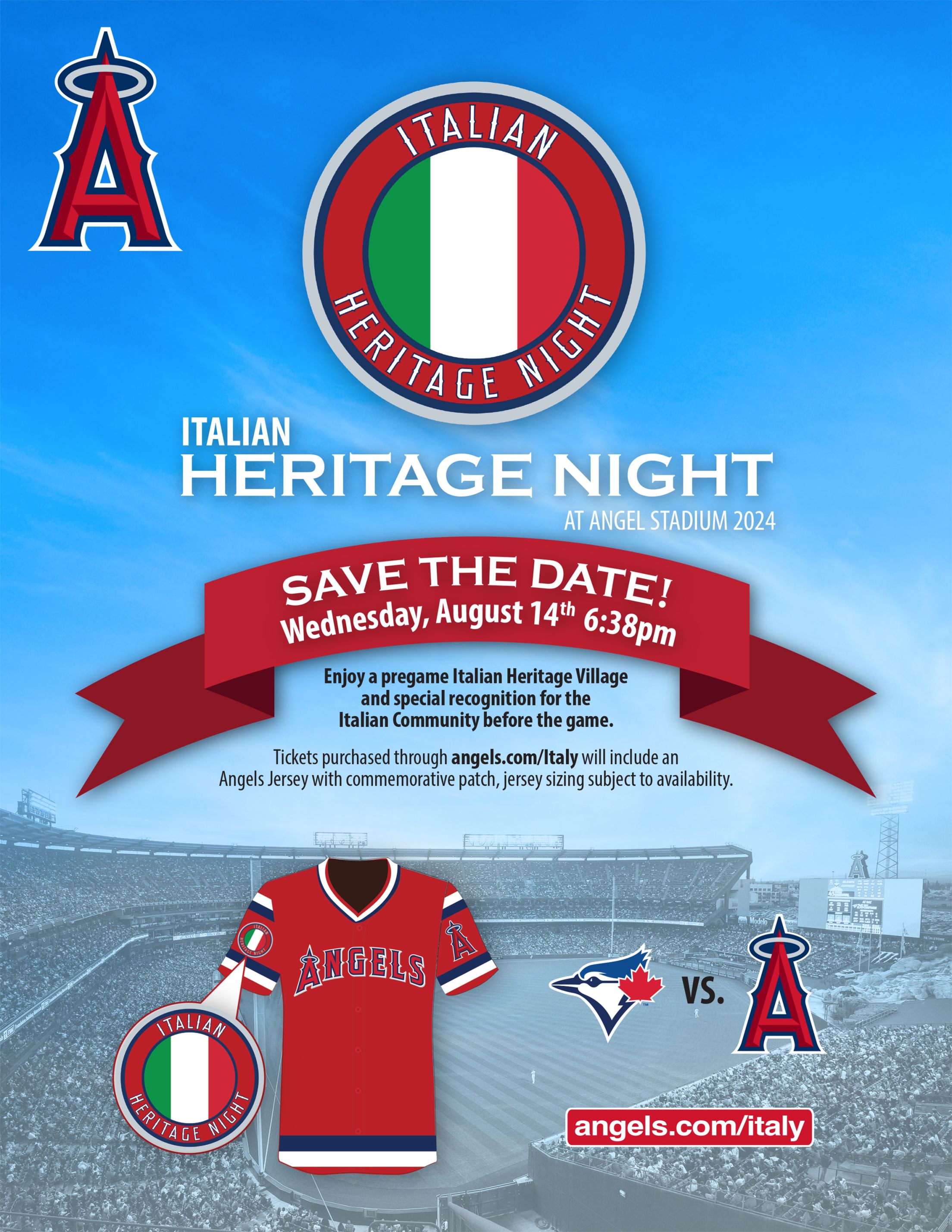 Come join us for Italian Heritage Night at the Big A! Tickets include an Angels jersey with an Italian themed patch! Be sure to join us in the Gate 5 Courtyard to pick up your jersey!