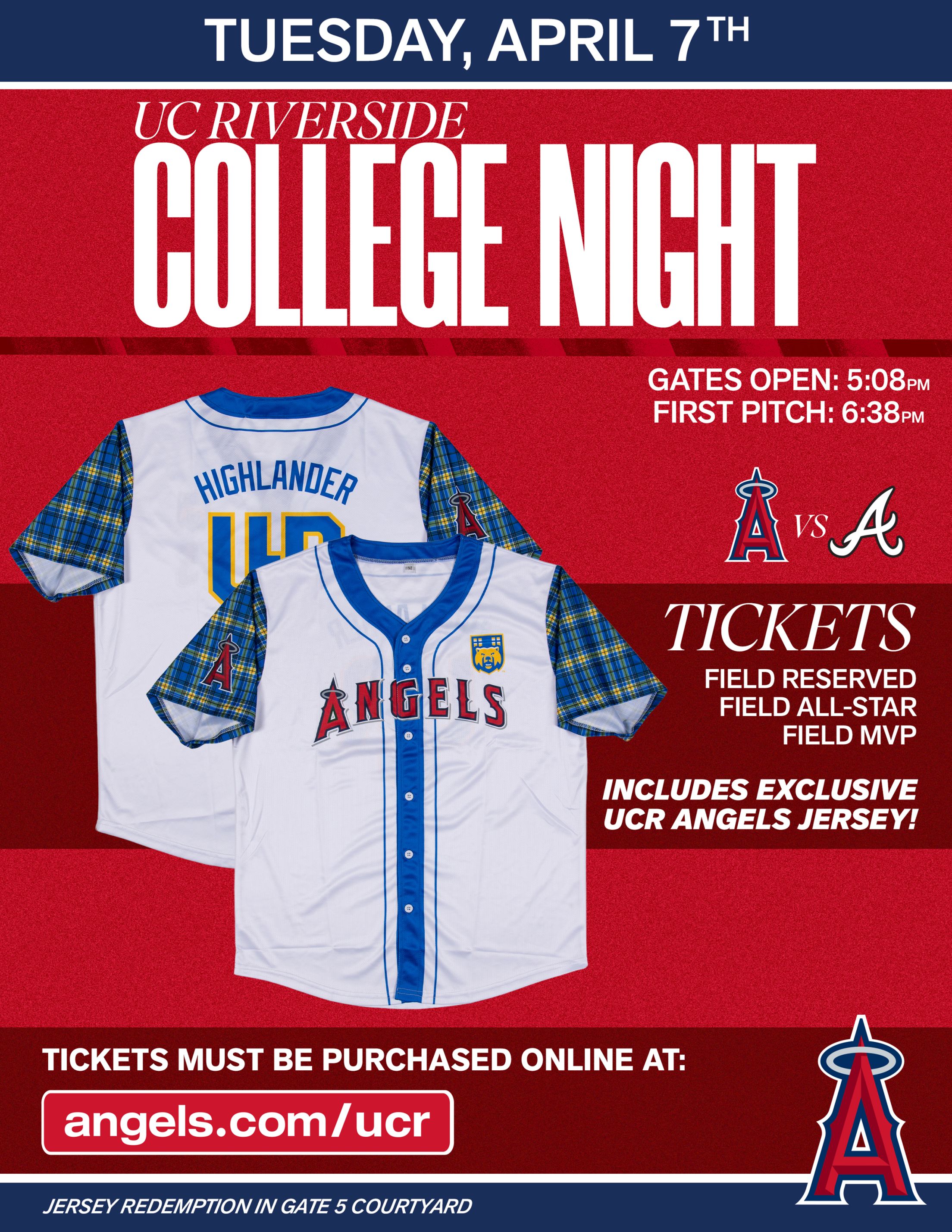 This year’s event features a customized UC Riverside Angels jersey! The ONLY way to receive a UC Riverside jersey is to purchase directly through Angels.com/UCR. As an added bonus, the first 25,000 fans to arrive will receive an Angels bobblehead!