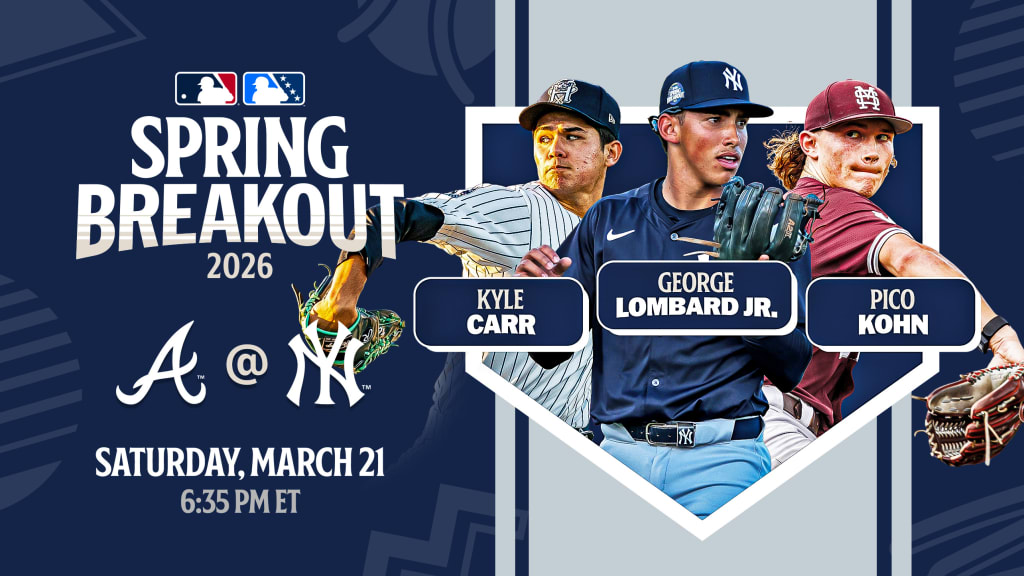 MLB's No. 32 prospect collected three extra-base hits, six walks and six RBIs across 33 plate appearances for the Yankees this spring. This week, Lombard will headline New York's contingent in the third Spring Breakout showcase.