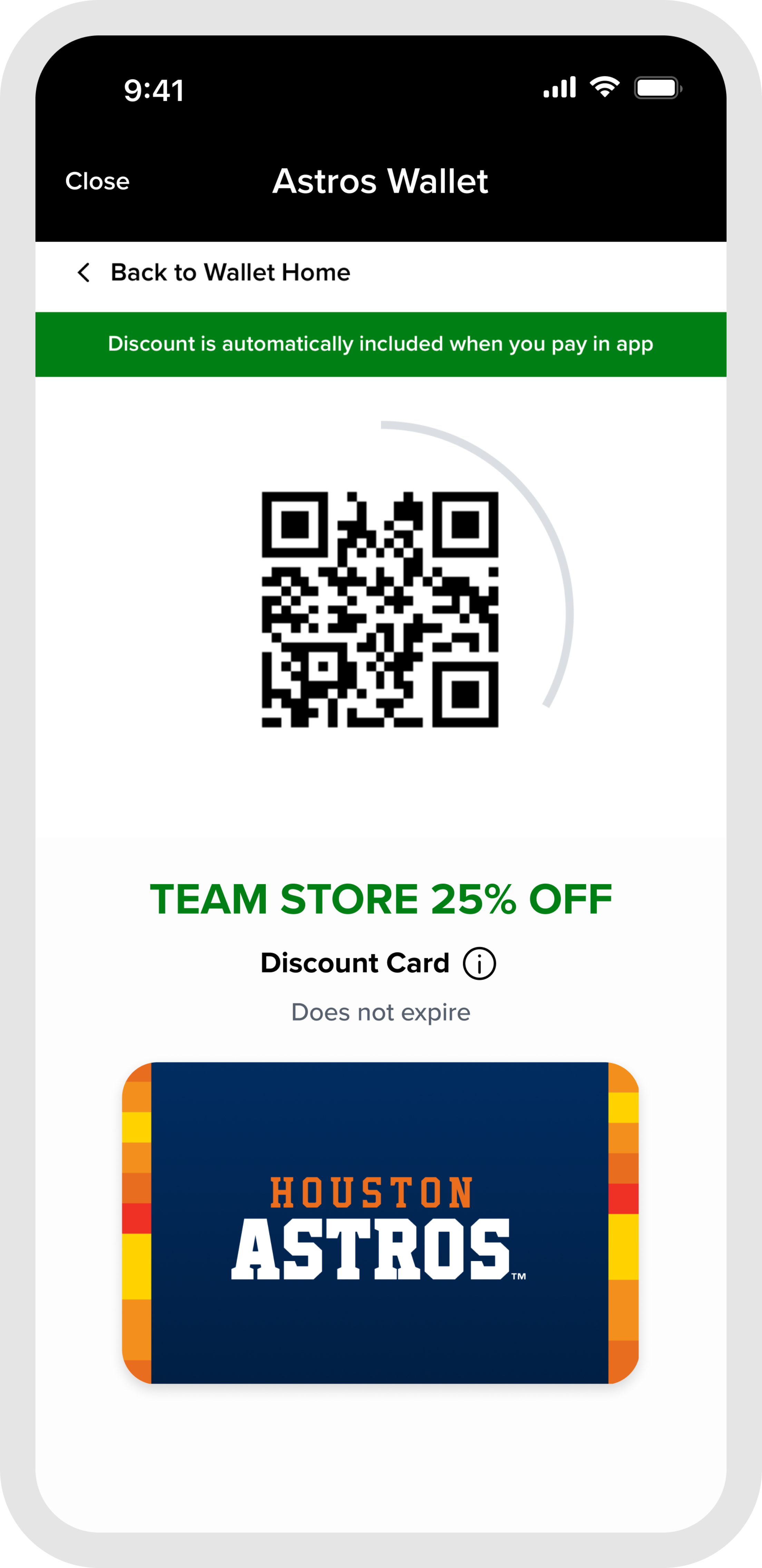 Astros Wallet centralizes your wallet, making your ballpark experience smoother and more enjoyable.