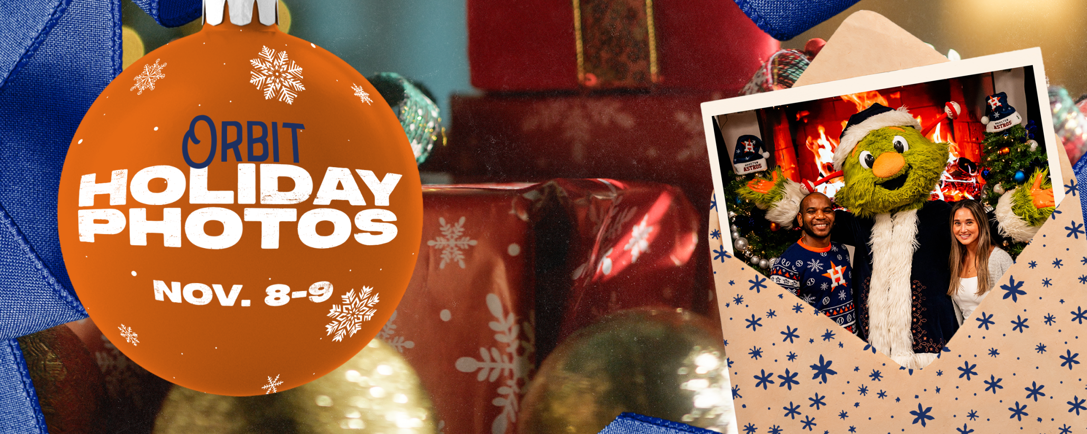 Have your Holiday Card photo taken at Daikin Park with everyone's favorite alien, Orbit!