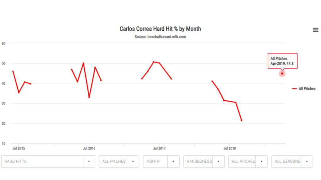 Even after returning from a six-week stint on the injured list with lower back soreness -- pain that directly correlated with his bat speed -- Correa’s readings were well off his elite quotas.