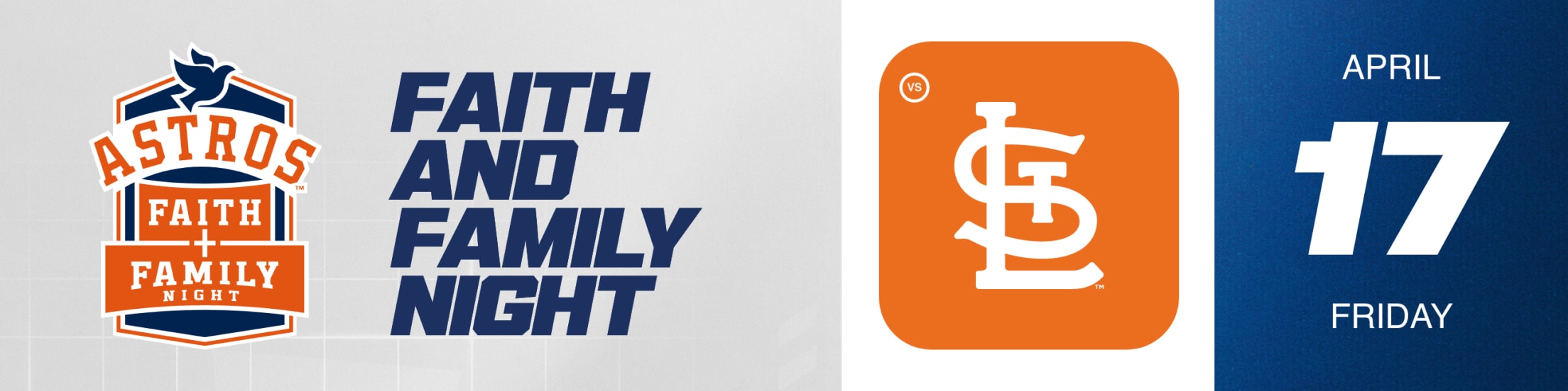 Faith & Family Night returns to Daikin Park on Friday, April 17! Bring your family, friends, and church groups for an uplifting evening at the ballpark. After the final out, stay for a special postgame testimonial featuring Astros players as they share their faith and personal journeys.