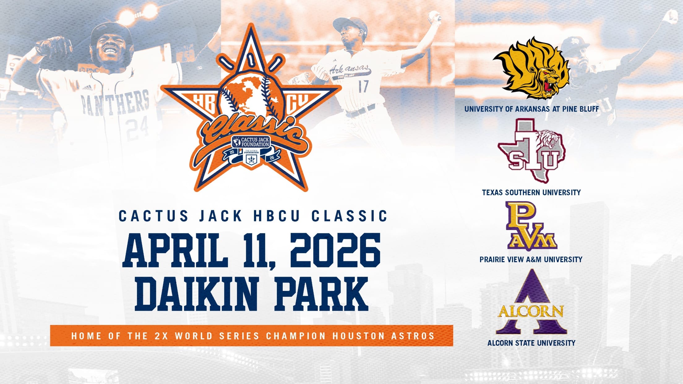 The 4th Annual Cactus Jack Foundation HBCU Classic is set for Saturday, April 11, 2026 at Daikin Park. The Classic, is designed by the Astros Youth Academy and Astros Foundation and to highlight Historically Black Colleges and Universities (HBCUs) and their baseball programs.