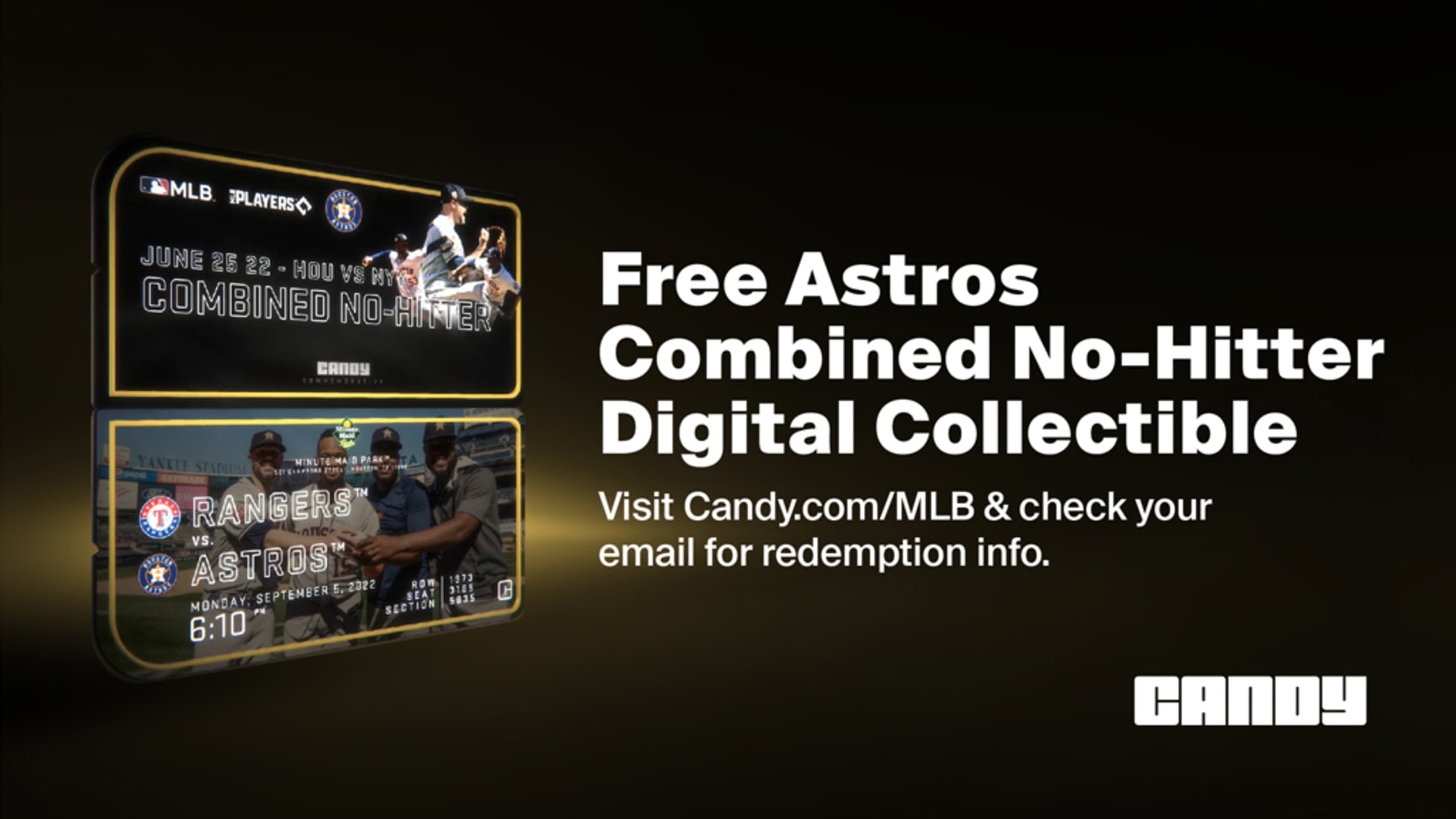 Come join us on Monday, September 5th, and you’ll have a chance to redeem a free Astros Combined No-Hitter Digital Collectible from Candy.