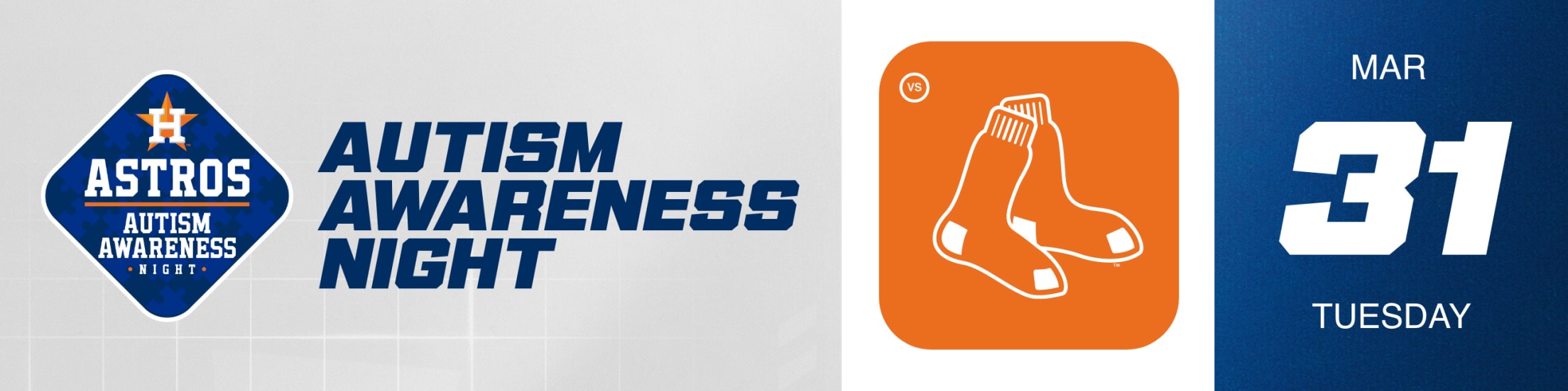 Join us on Tuesday, March 31, as the Houston Astros take on the Boston Red Sox at 7:10 p.m. for a special evening in recognition of Autism Awareness. This meaningful night will feature a pregame ceremony and thoughtful activations throughout the ballpark designed to honor, support, and celebrate the autism community, including: