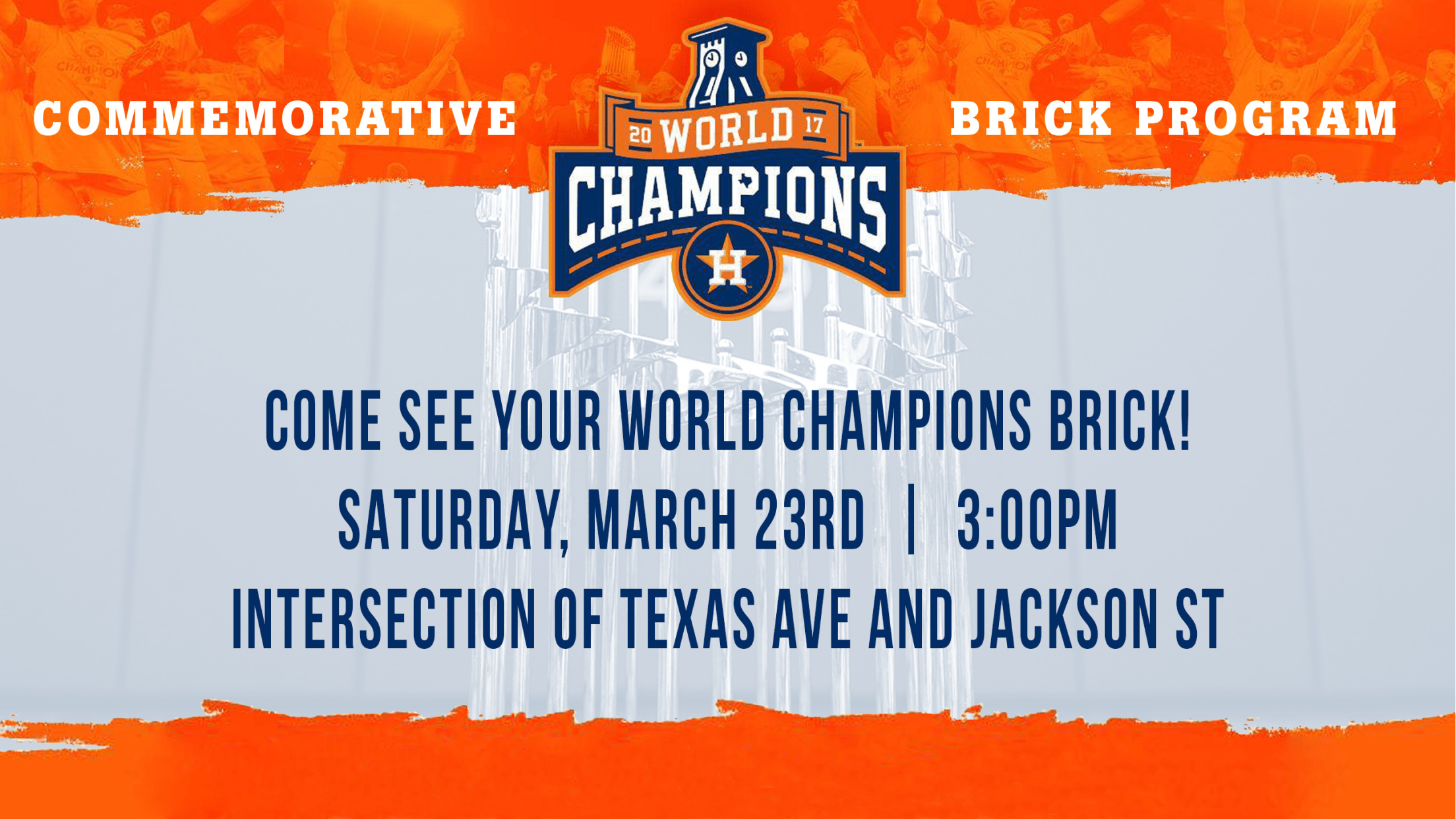 The time has come - your 2017 World Champions Commemorative brick has arrived, and we hope you can come see it first-hand this weekend! We invite you out to Champions Walkway (located on Texas Avenue) to view your newly installed World Champions Commemorative Brick, enjoy some refreshments, and take lots of pictures!