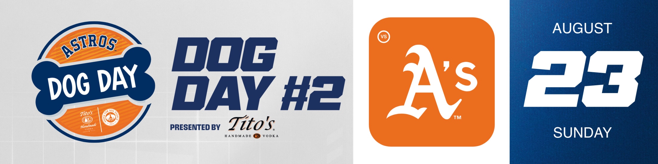 Bring your four‑legged best friend to Daikin Park on Saturday, August 22 and Sunday, August 23 for our annual Dog Day celebration presented by Tito's Handmade Vodka! Your pup can cheer on the Houston Astros as we take on the Athletics’ and can participate in fun, unique Dog Day activities!