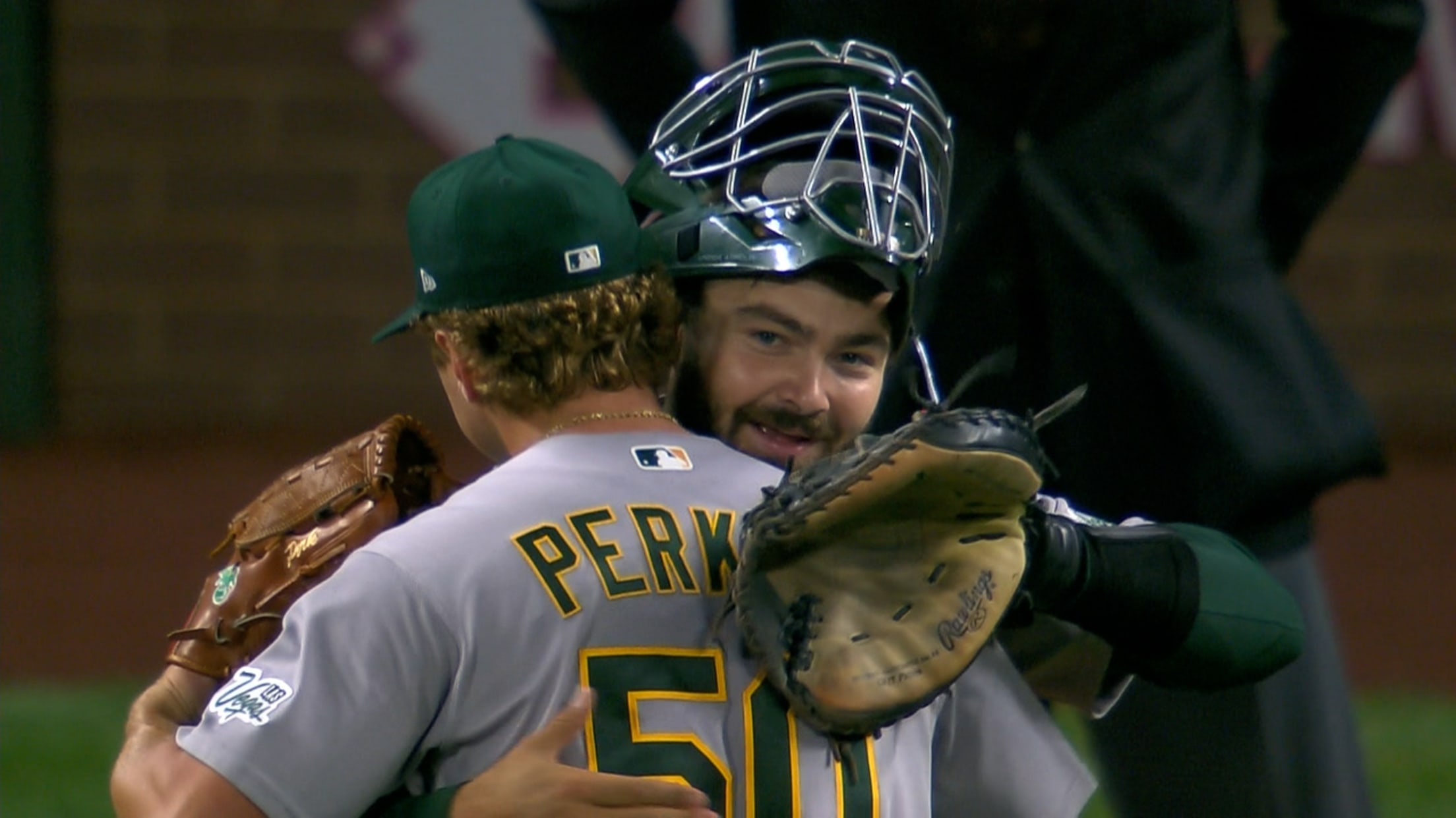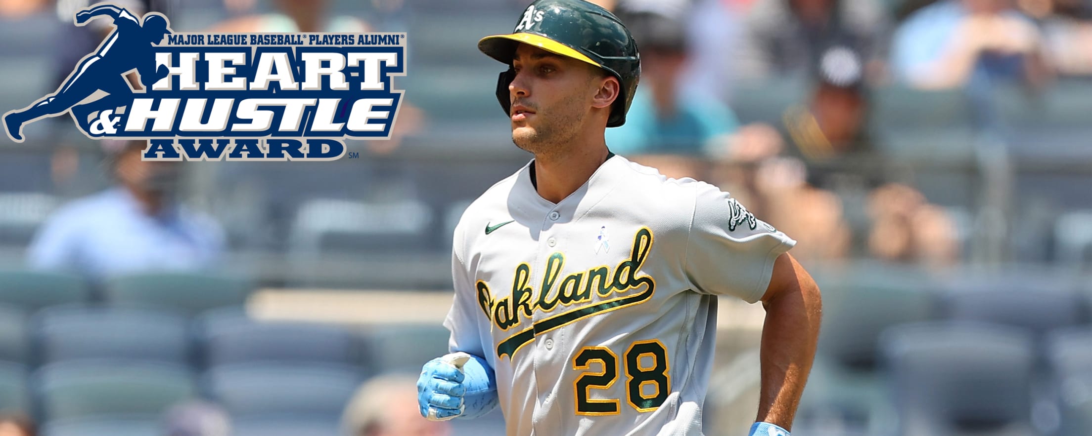 Zack Gelof slides to make a backhanded stop and fires to first base in time for the out