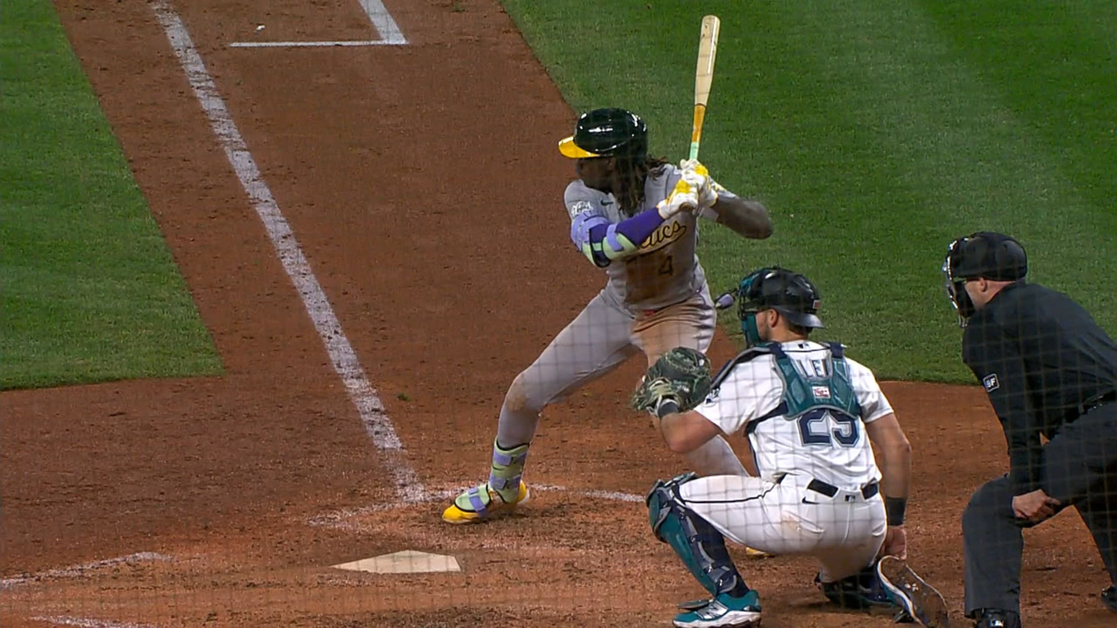 Tony Kemp singles on a line drive to right field, plating Ramón Laureano to extend the A's lead to 4-1 against the Giants