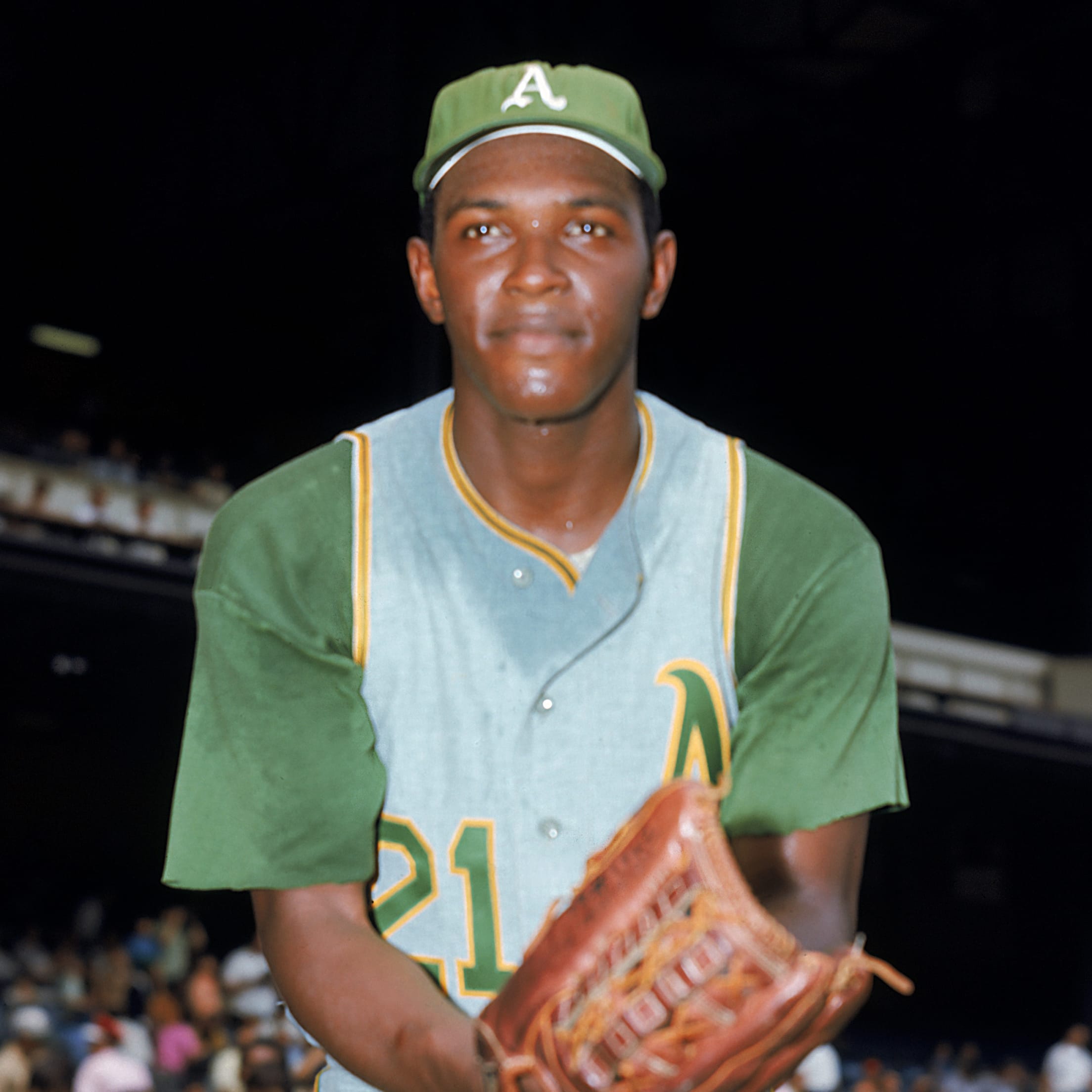 No pitcher in Oakland history has struck out more batters (1,315) or started more games (262) than Vida Blue. Drafted by the Kansas City A’s in 1967, Blue made his Major League debut in 1969 just eight days before his 20th birthday. He tossed a no-hitter in 1970 and then burst onto the national scene in 1971 when he won both the American League Cy Young Award and Most Valuable Player Award as a 21-year-old. Blue set Oakland records with 301 strikeouts and a league-leading 1.82 ERA while compiling a 24-8 record.