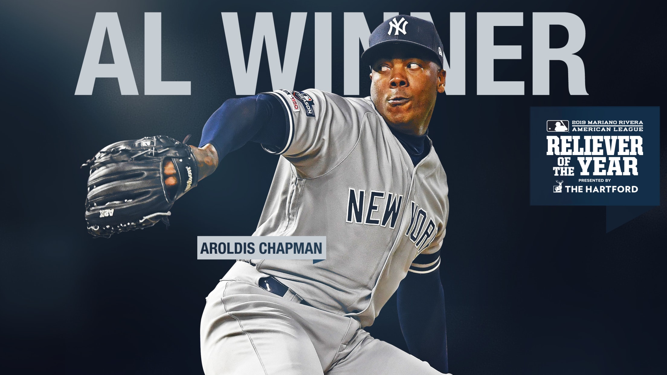Aroldis Chapman is the second Yankee to win the award named after Mariano Rivera after topping the 30-save mark (37) for the seventh time in the past eight years. He finished with a 2.21 ERA, 1.11 WHIP and 85 strikeouts in 57 innings. More »