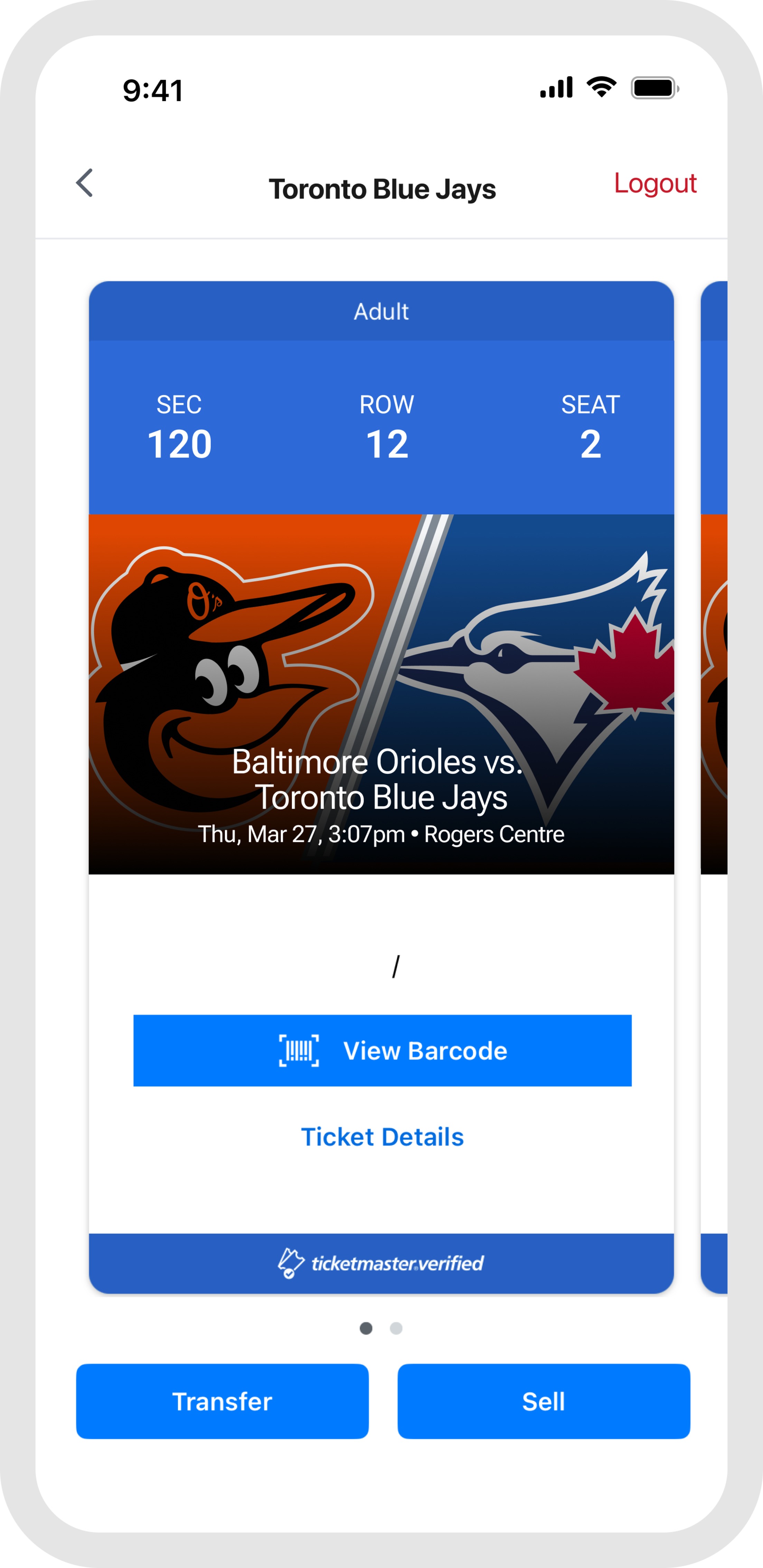 Log in to your Ticketmaster account within the Tickets Tab to view your Blue Jays tickets.