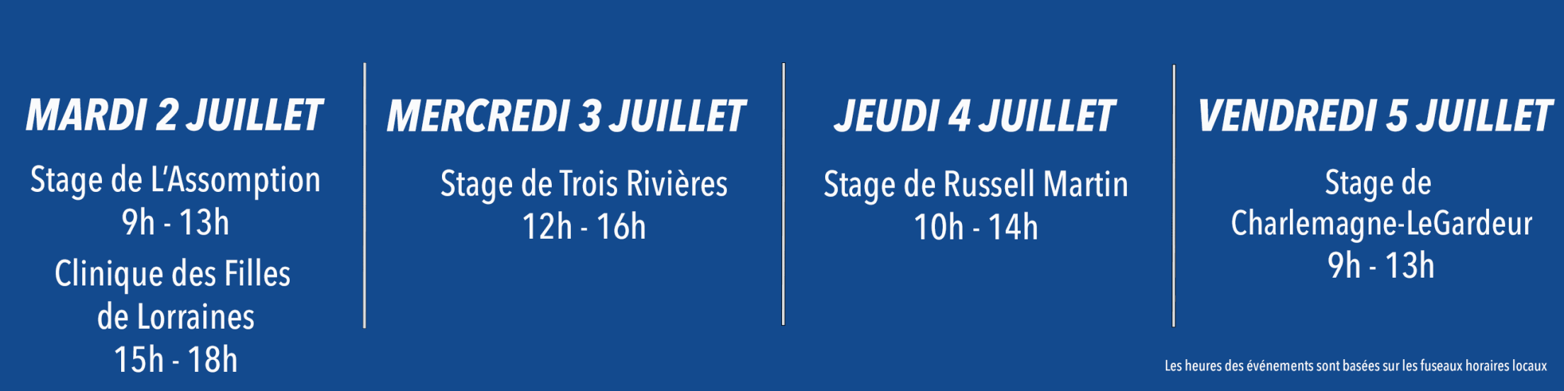 | Stage pour les filles | mardi 2 juillet 2024 | 15h – 18h | Lorraine, QC - SOLD OUT | Parc Lorraine |