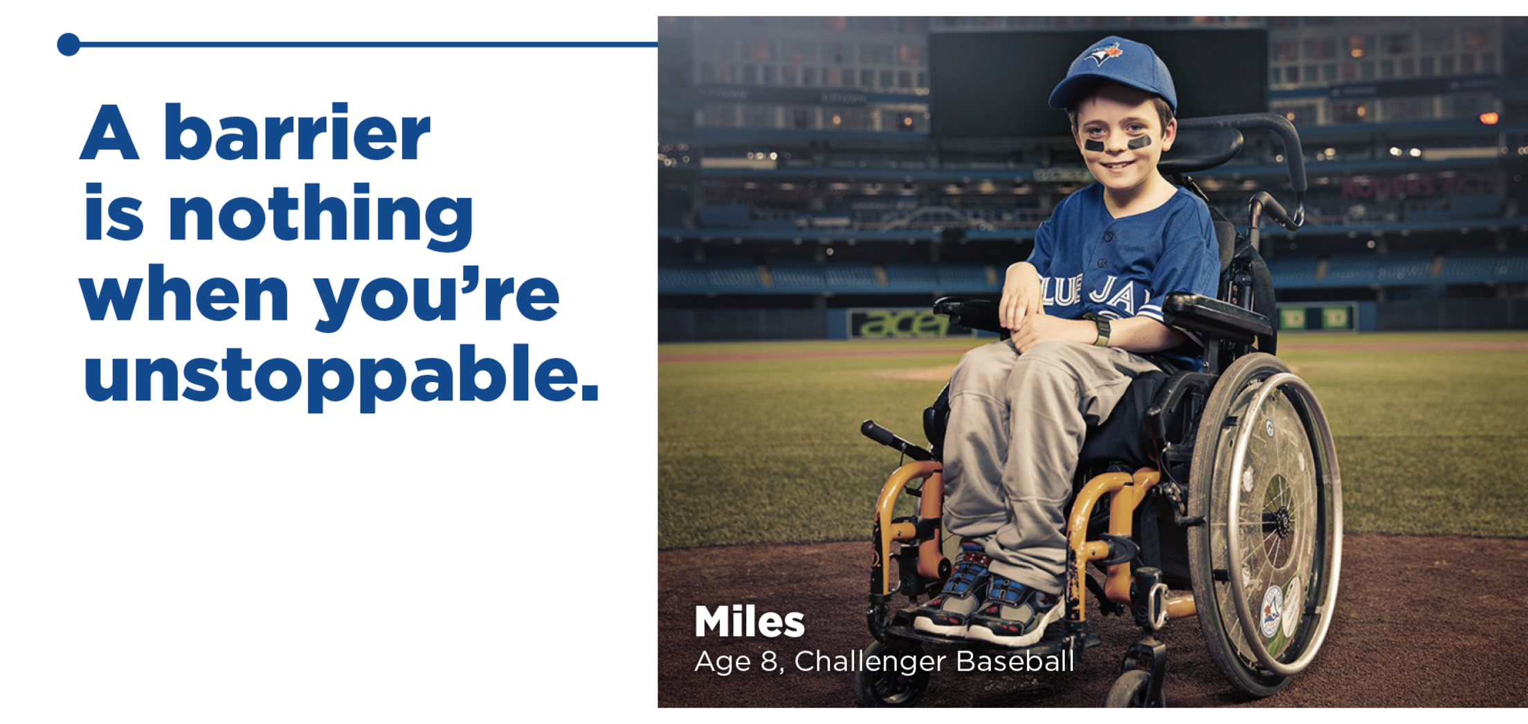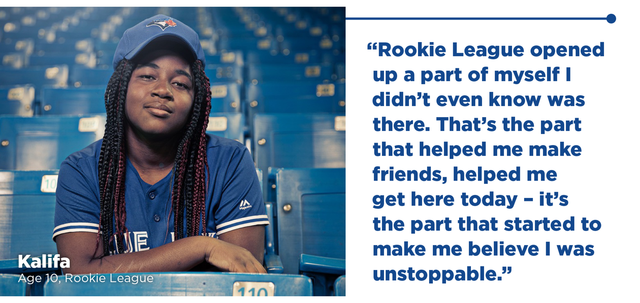 All across our country, the Blue Jays brand is acting as a catalyst to inspire positive social change. Jays Care proudly impacts over 65,000 kids annually through our programs designed to give kids all across Canada the life skills and confidence they need to become truly #UnstoppableKids. Join us throughout the 2019 season as we celebrate powerful stories of strength and resilience featuring a diverse group of kids from coast to coast to coast.