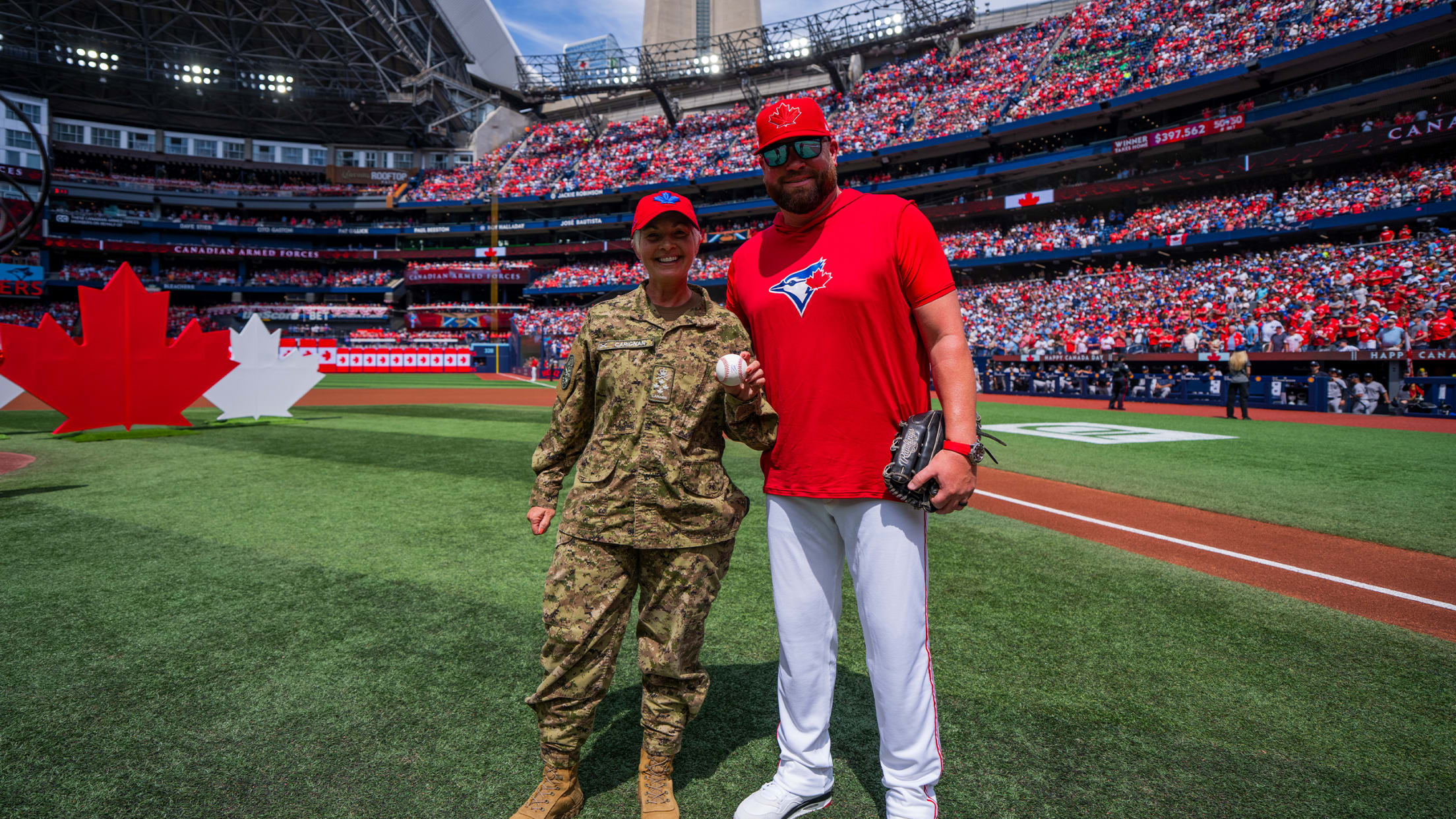 On Canada Day 2025, the Blue Jays welcomed General Jennie Carigan, Chief of Defence Staff to throw out the Ceremonial First Pitch. With over 35 years of service in the Canadian Armed Forces, General Carigan is the first female appointed Chief of the Defence Staff, Canada’s highest ranked military position.