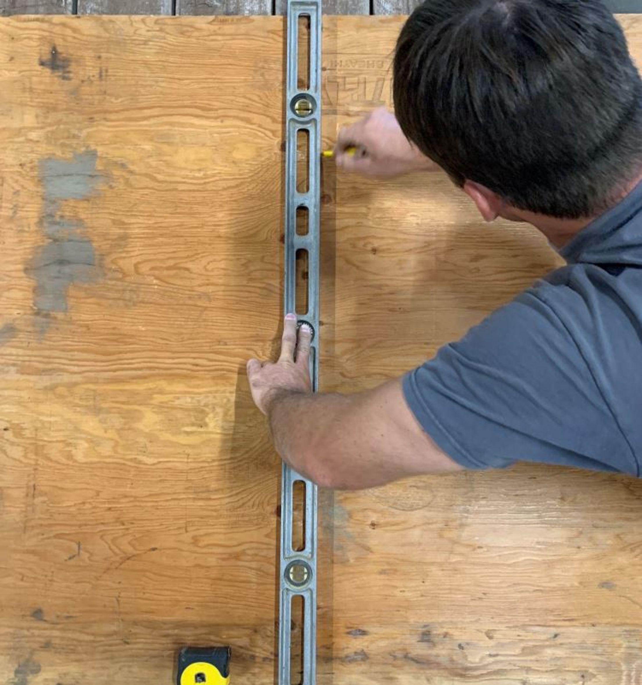 1. Cut the Plywood board to size. We cut the board to be 2’x5’ but this can be adjusted if you’d like to make your board bigger or smaller.