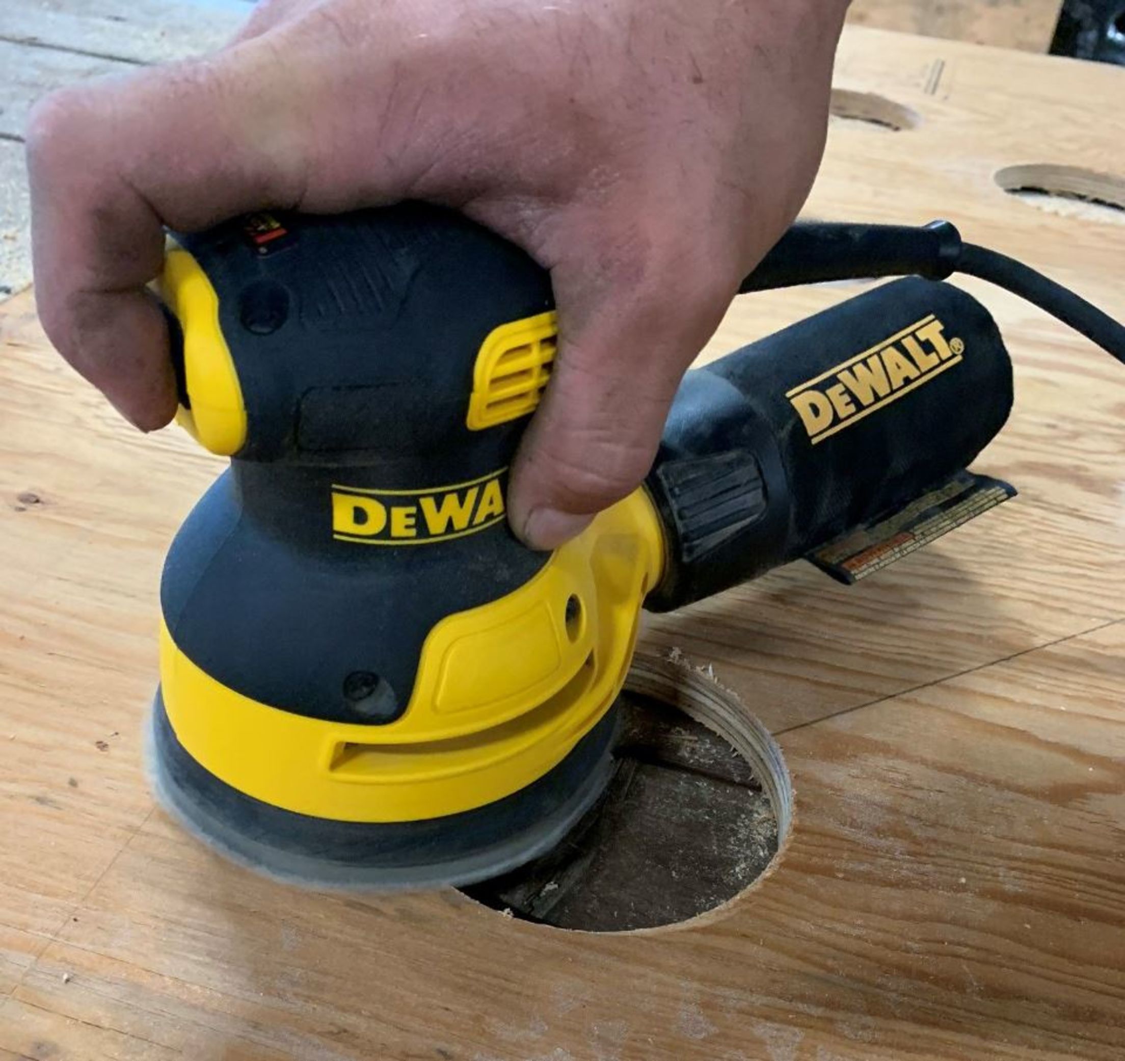 7. Run a sanding block or palm sander along the board to remove any rough edges.