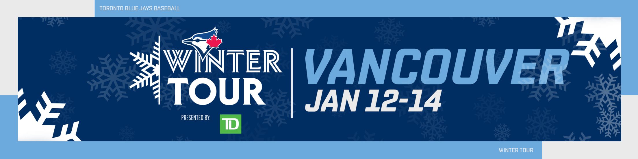 After three years, our annual Winter Tour presented by TD returns! Winter Tour recognizes the passion and pride of Blue Jays fans that extends well beyond Rogers Centre, to millions of fans across the country. Winter Tour provides Blue Jays players and personnel the opportunity to acknowledge fans from coast-to-coast-to-coast and to give back to those communities, all while celebrating the game of baseball.