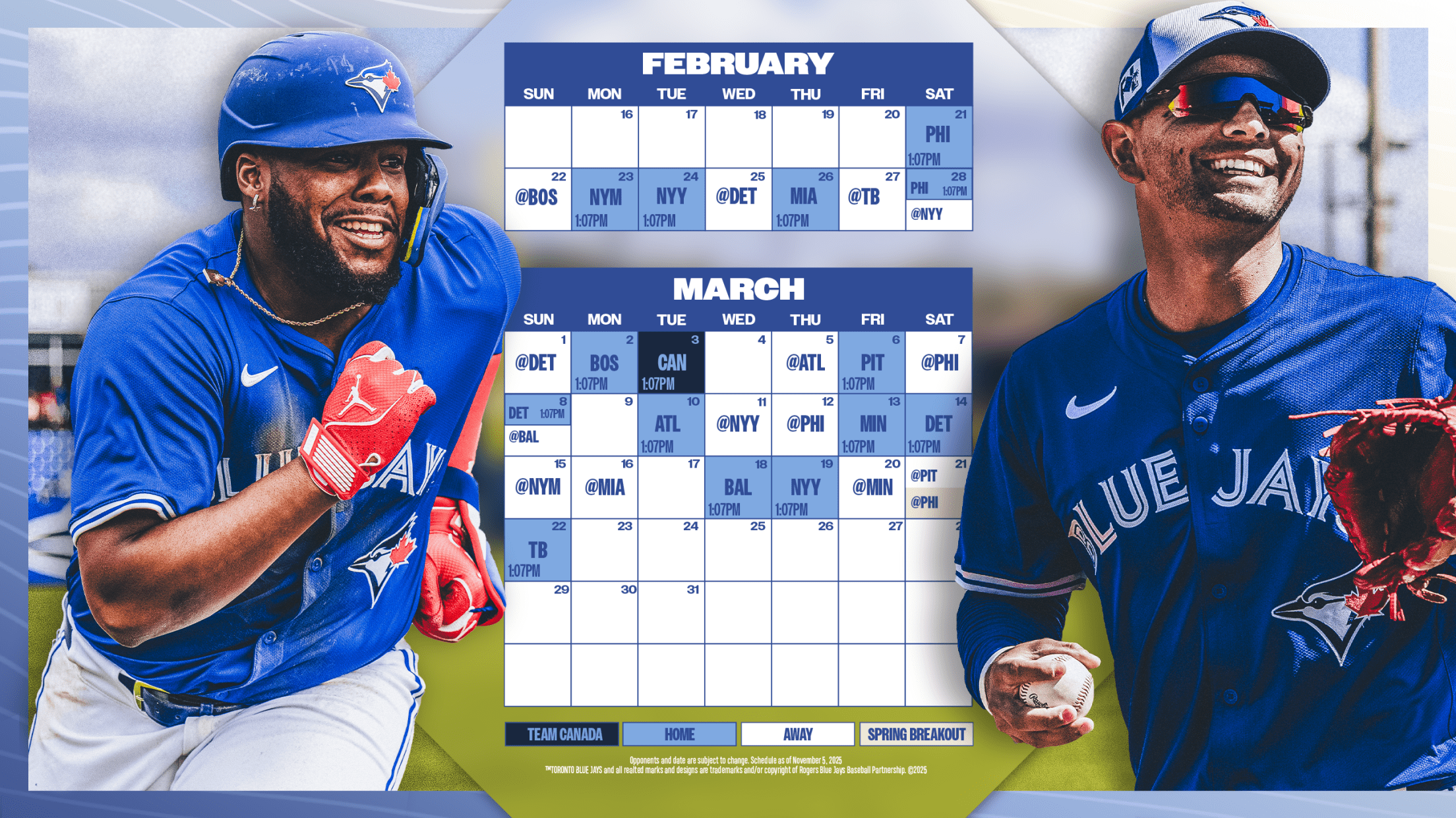 The Toronto Blue Jays 2026 Spring Training schedule is available in a handy one-sheet PDF format to view and print right from your own computer. Hang it on your refrigerator or by your desk for a quick and easy reference.