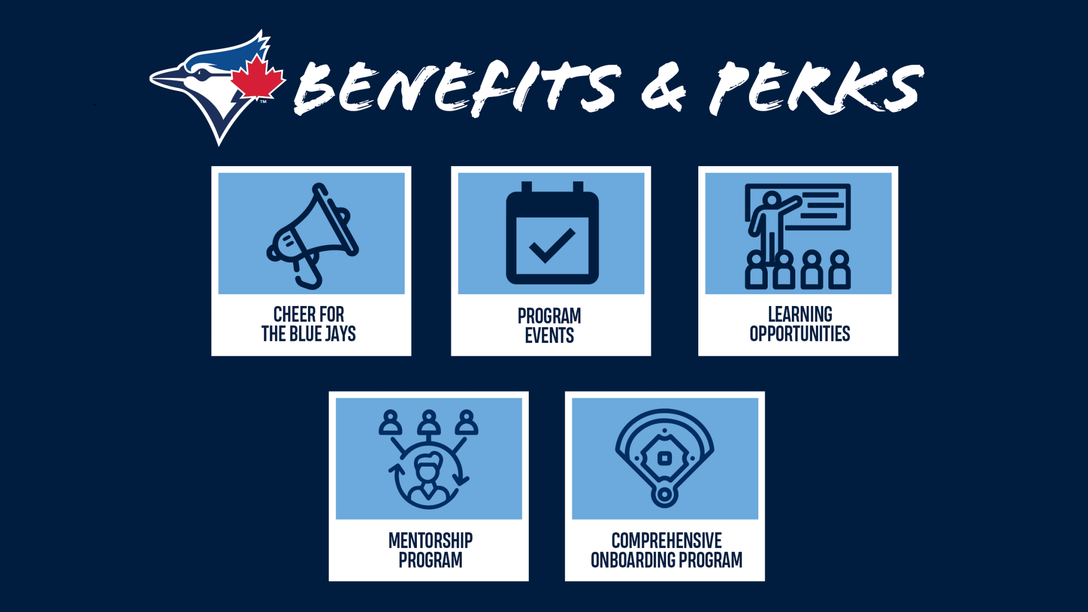 Selected students will become part of a diverse cohort of summer associates spanning various departments. The associate program focuses on nurturing the next generation of Blue Jays leaders, offering exclusive access to department-specific training, social activities, and mentorship opportunities. Each participant will have a cross departmental mentor from within the organization to guide them throughout the program and the unique chance to present to the Toronto Blue Jays Leadership Team.