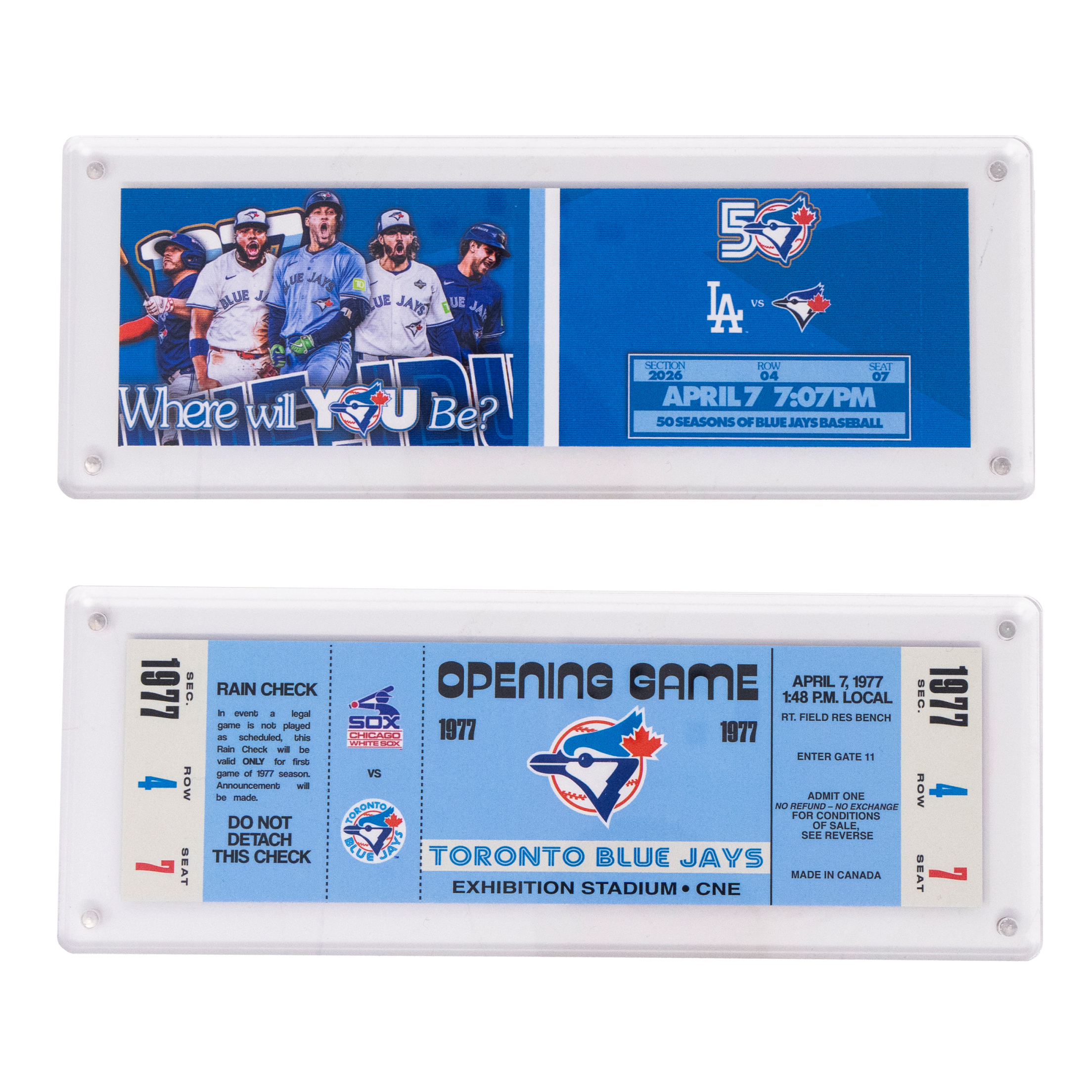 The first 15,000 fans upon entry will also receive a special Blue Jays Commemorative Ticket. This double-sided keepsake features a replica ticket from the Blue Jays' inaugural 1977 game, paired with a commemorative ticket marking the 50th season in 2026.