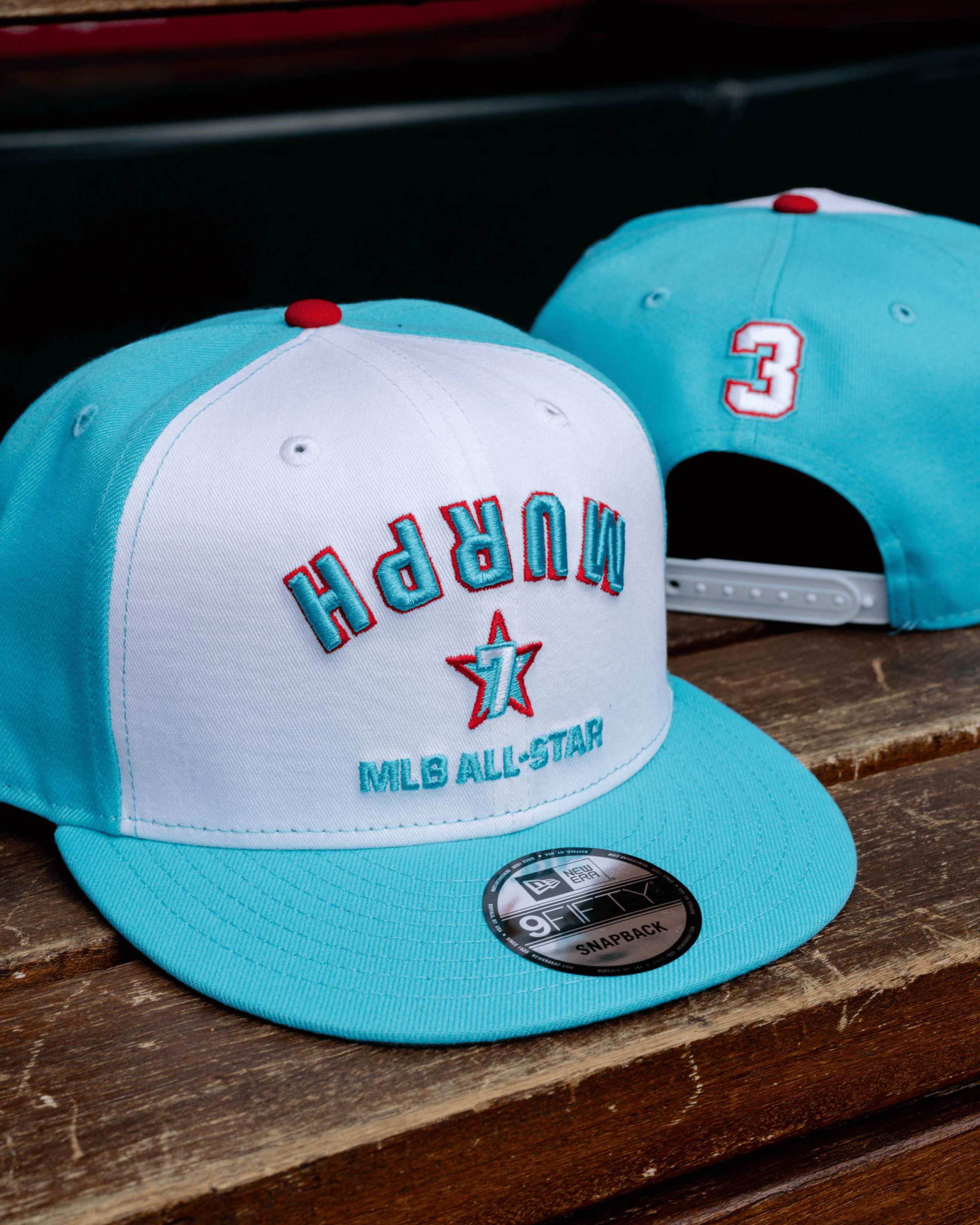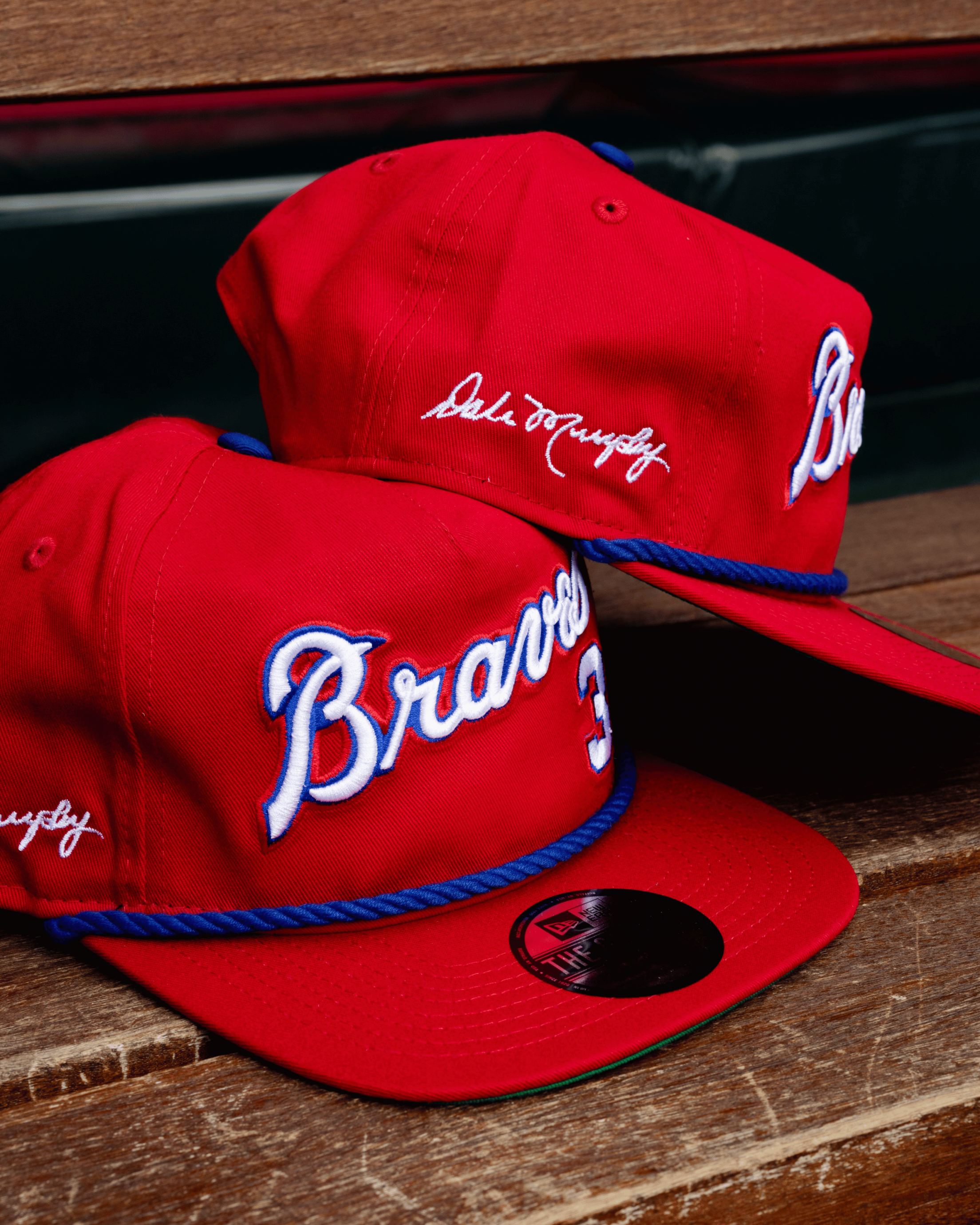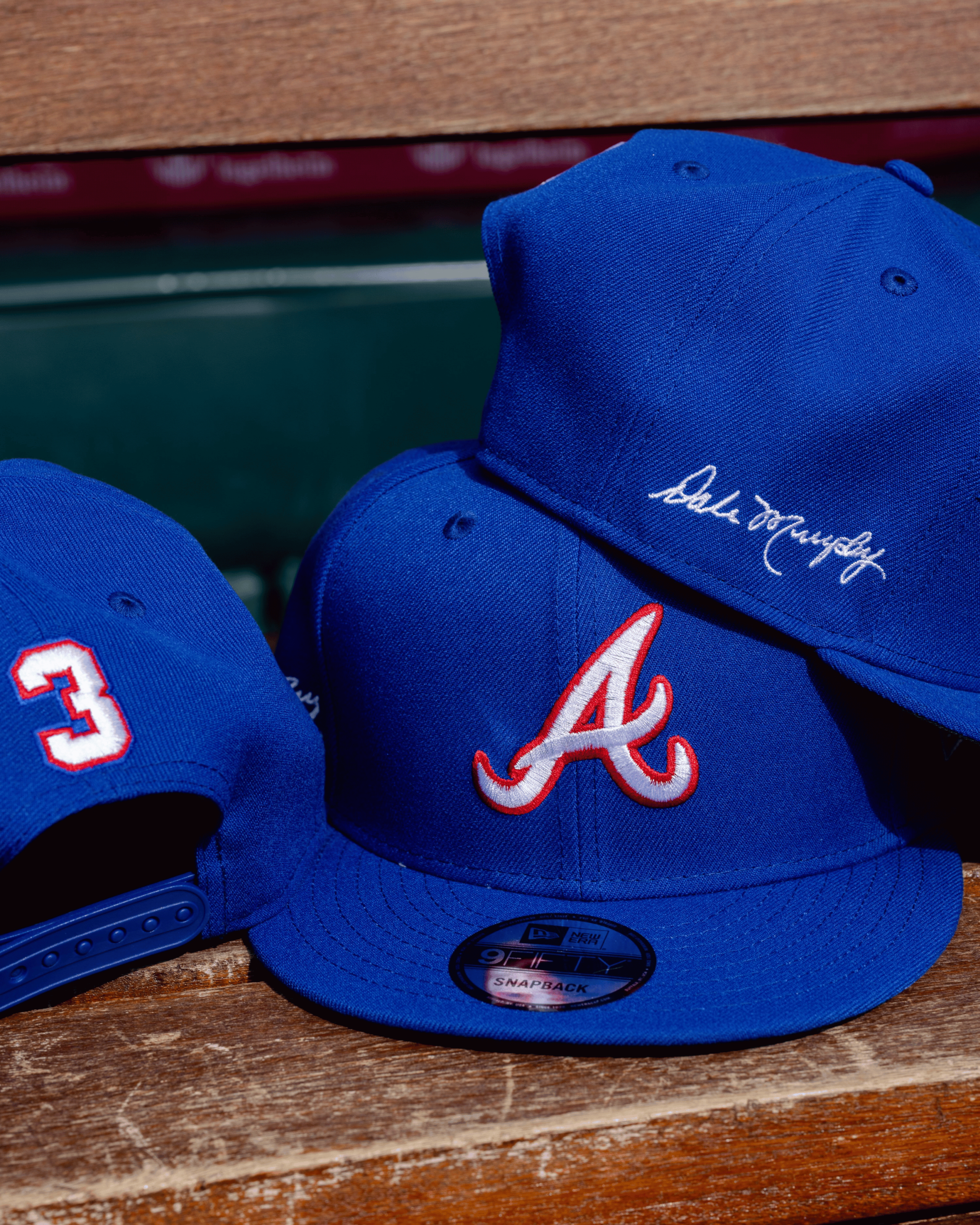 As part of the Threads Collab Collection, six cap styles designed by Braves Hall of Famer Dale Murphy will launch at Threads and the Braves Clubhouse Store on Monday, July 21st! This limited edition collection was inspired by Dale’s time playing for the Braves, incorporating colors from his playing era, his iconic number 3, his autograph and “7x All-Star” into the collection. Dale was encouraged by some of his 8 children to include upside down text on some of the caps as this is a current fashion trend. Four of the designs will be available in New Era 9Fifty snapback style, and two designs will be available in New Era Golfer style.