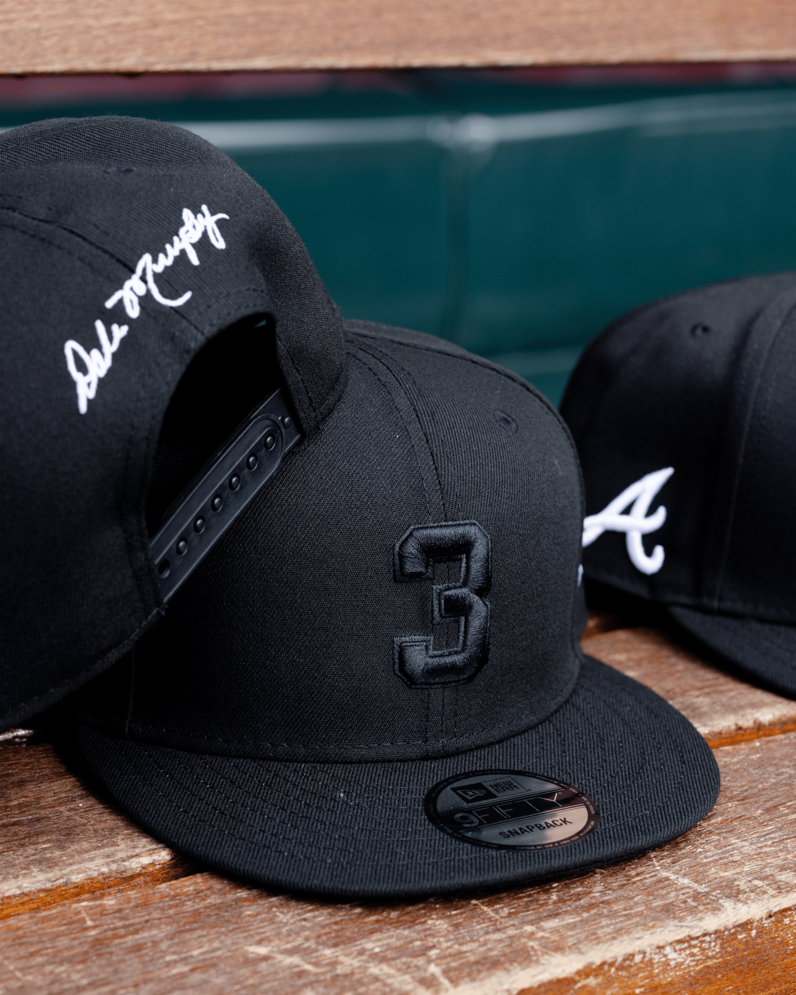 As part of the Threads Collab Collection, six cap styles designed by Braves Hall of Famer Dale Murphy will launch at Threads and the Braves Clubhouse Store on Monday, July 21st! This limited edition collection was inspired by Dale’s time playing for the Braves, incorporating colors from his playing era, his iconic number 3, his autograph and “7x All-Star” into the collection. Dale was encouraged by some of his 8 children to include upside down text on some of the caps as this is a current fashion trend. Four of the designs will be available in New Era 9Fifty snapback style, and two designs will be available in New Era Golfer style.