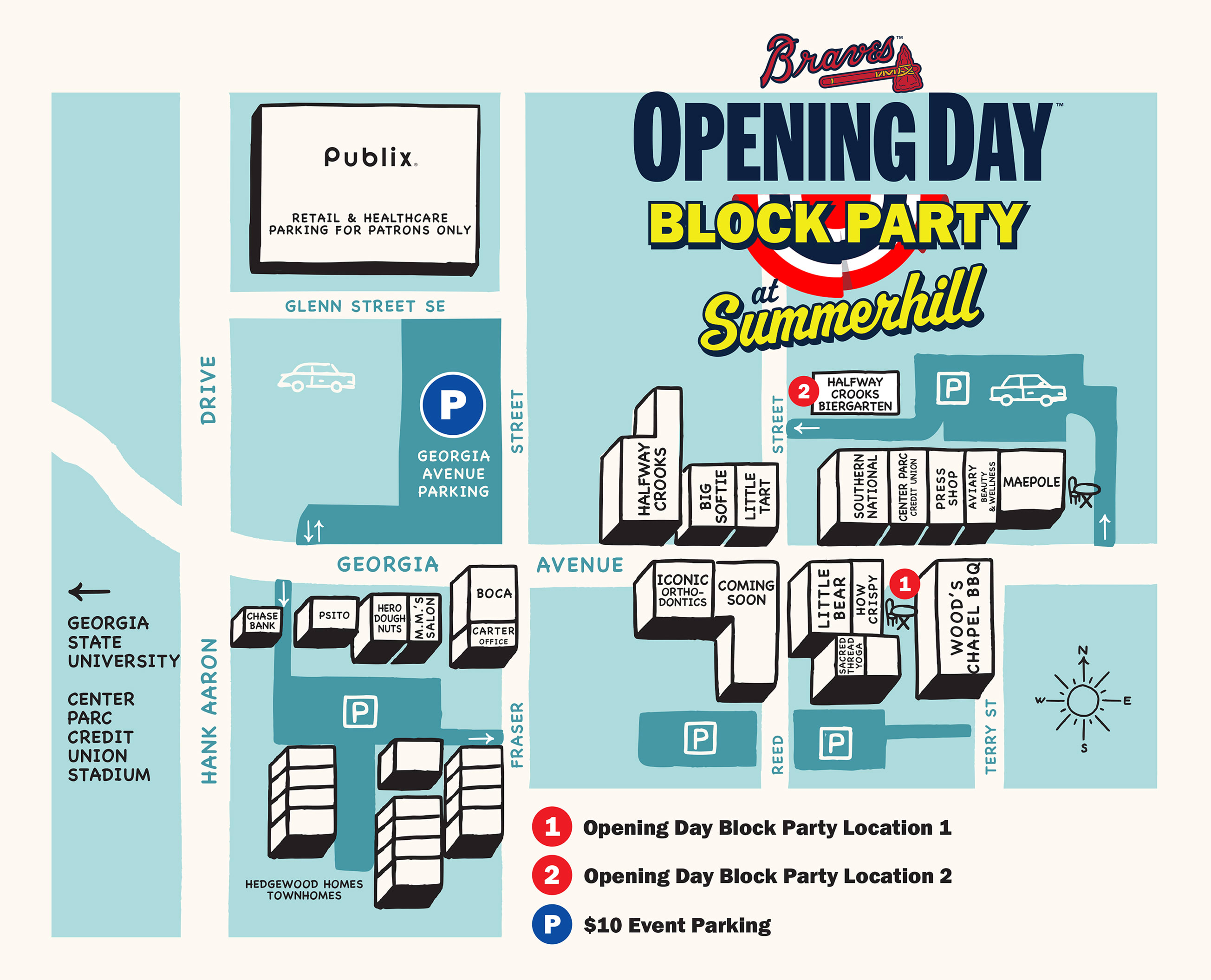 Special appearances will be made by Braves entertainment teams, including BLOOPER, the Heavy Hitters, and Tomahawk Team. Fans can enjoy live performances and interactive elements, including a watch party, lawn games and contests, food and drinks from local restaurants, and more. Block party festivities will begin at 3:30 p.m. and First Pitch will take place at 4:10 p.m., with areas to view the Braves game set up along Georgia Avenue and Reed Street in the nearby courtyard and beer garden.