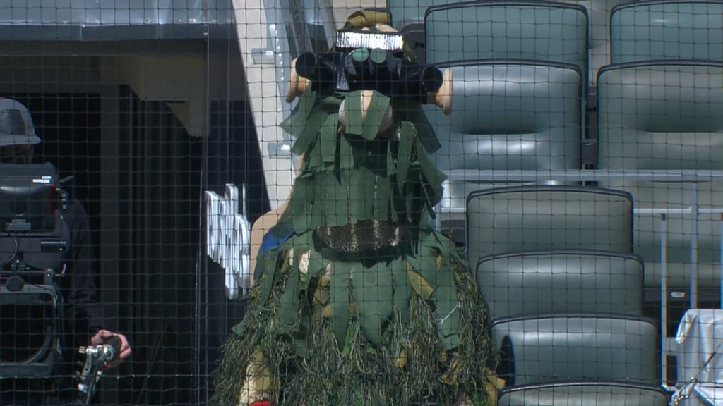 Mascots are usually chaotic, frenzied creatures who never stop until the game is over. Instead, Mosella had Blooper stand silently in a homemade ghillie suit that took nearly 30 hours to make.