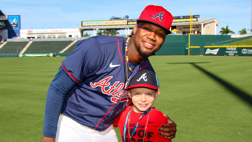 Ronald Acuña Jr. and Ozzie Albies were among the Braves who welcomed James, a 7-year-old cystic fibrosis patient, to the team’s Spring Training facility. James received a personalized Braves jersey and experienced the thrill of playing catch with Acuña, who is his favorite player. Albies, Orlando Arcia and Travis d’Arnaud also visited with the young fan before that day’s game against the Twins.