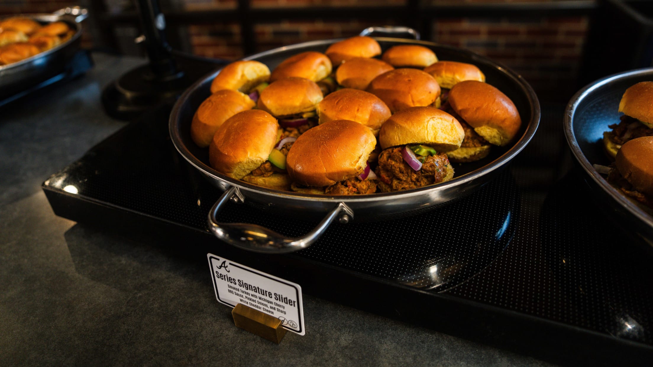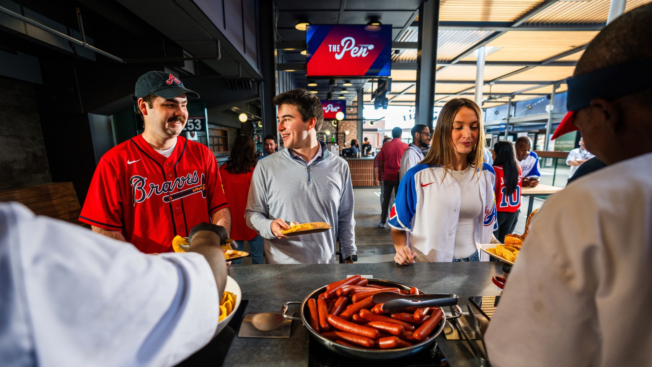 The Pen is an exciting way to entertain your guests at Truist Park. Located above the Braves bullpen in right field, this space provides an elevated take on group seating with comfortable mesh seats, all you can eat ballpark fare, and a private open-air lounge to mix and mingle.