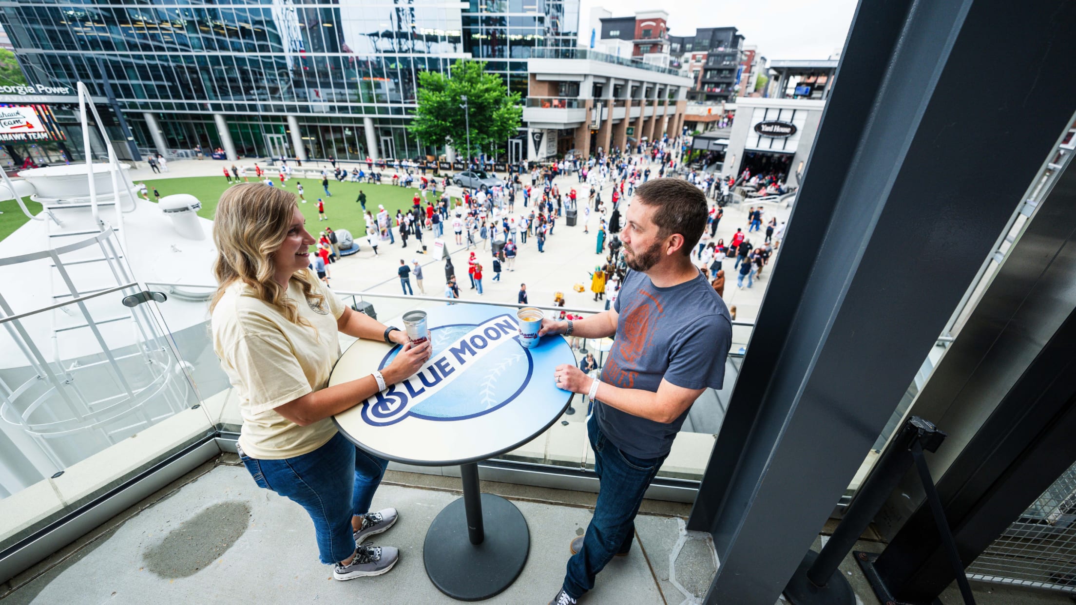 Guests may enter Over the Moon by taking the stairs located to the right of the Braves Clubhouse Store. Elevator access is available inside the main floor of the Blue Moon Brewery and Grill.