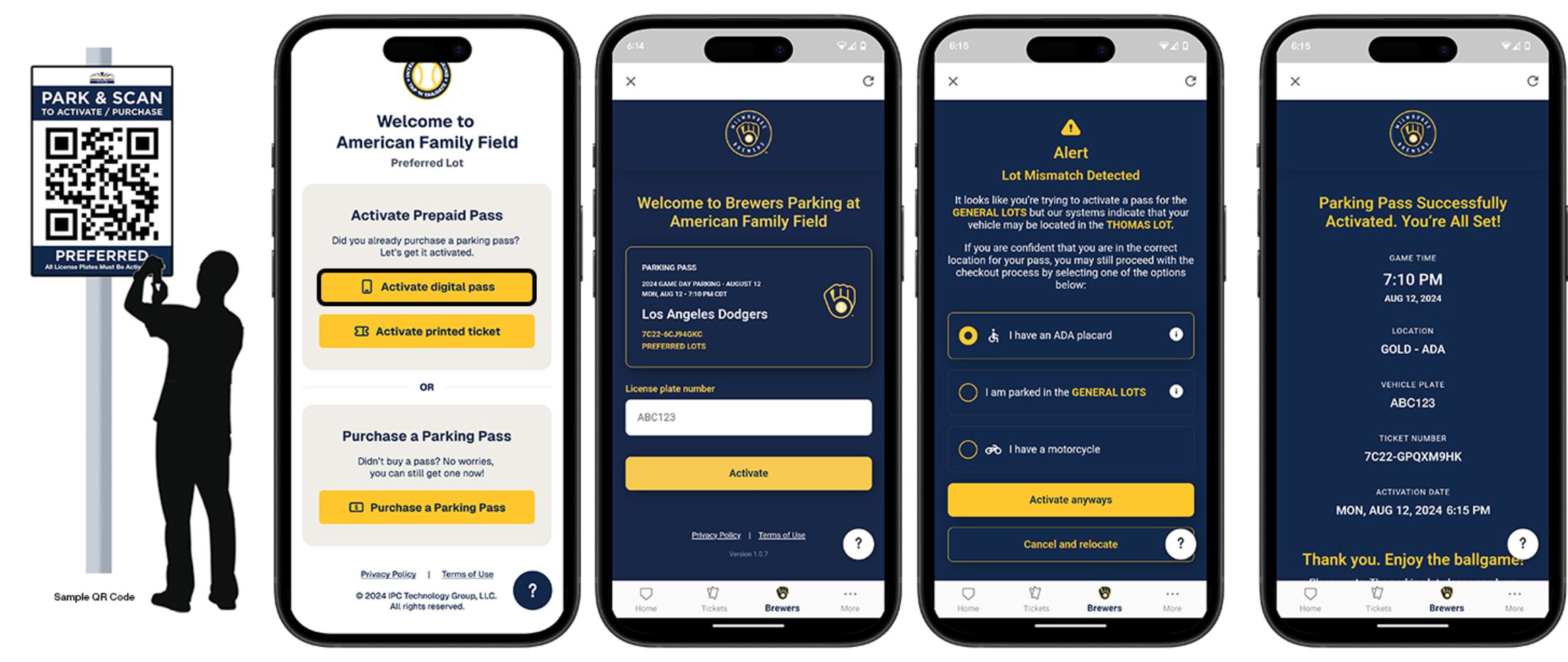 Accessible parking does not require a preferred parking pass. Accessible parking requires only a general parking pass, which may be purchased at the applicable price in advance or upon arrival on the day of the game. The general parking pass must be combined with a valid state-issued Americans with Disabilities Act (“ADA”) permit displayed in your vehicle or on your vehicle license plates to allow parking in the accessible parking spaces. Those who only have the general parking pass without the valid state-issued ADA permit will be directed to General Parking. Violators who fail to display proper plates or permits may be ticketed and/or towed at the owner's expense. Accessible parking spaces are available on a first-come, first-served basis so we recommend arriving early. For accessible parking locations, please see the American Family Field Parking Map below. For additional information on parking, please visit brewers.com/parking.