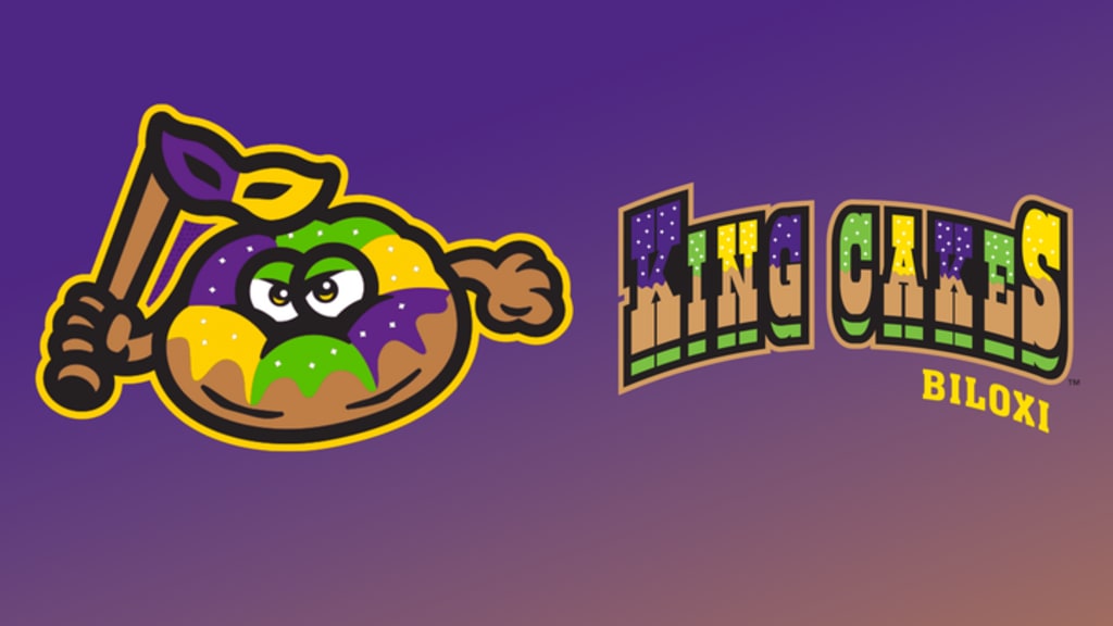The King Cakes identity is the first alternate one for the Shuckers, who played their first season in 2015 after relocating from Huntsville, Ala. The logos were created by Brandiose, the San Diego-based studio also responsible for Biloxi's primary logo. The King Cakes' logo features an anthropomorphic rendition of such, coated in yellow, green and purple frosting and clutching a baseball bat. The sleeves of the uniforms, meanwhile, will feature striping that resembles Mardi Gras beads.