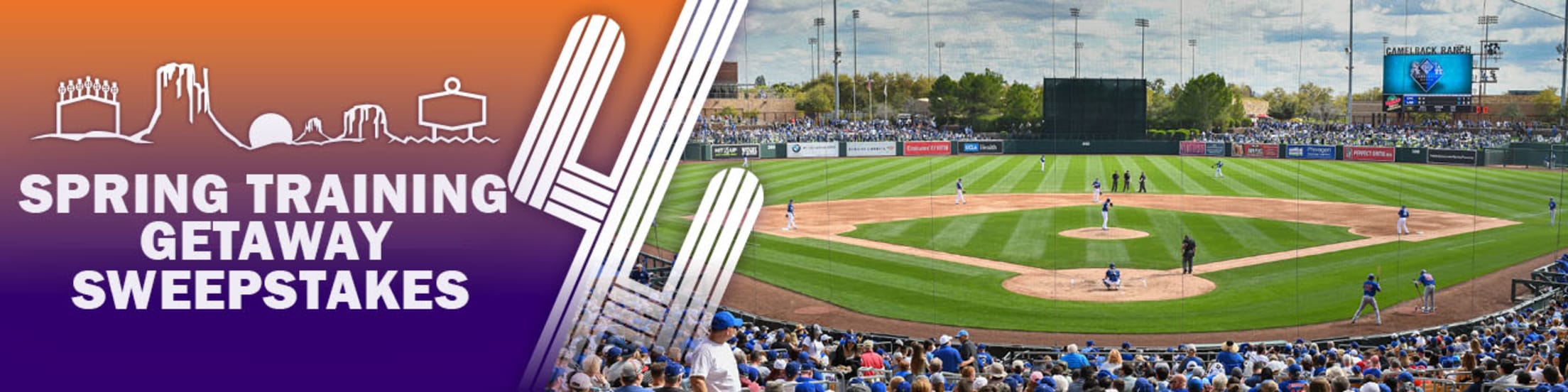 One (1) winner will be selected at random and will receive four (4) tickets to a 2024 Spring Training game at Camelback Ranch-Glendale and two (2) nights stay at a Glendale, Arizona hotel. Tickets and hotel stay dates are based on availability.