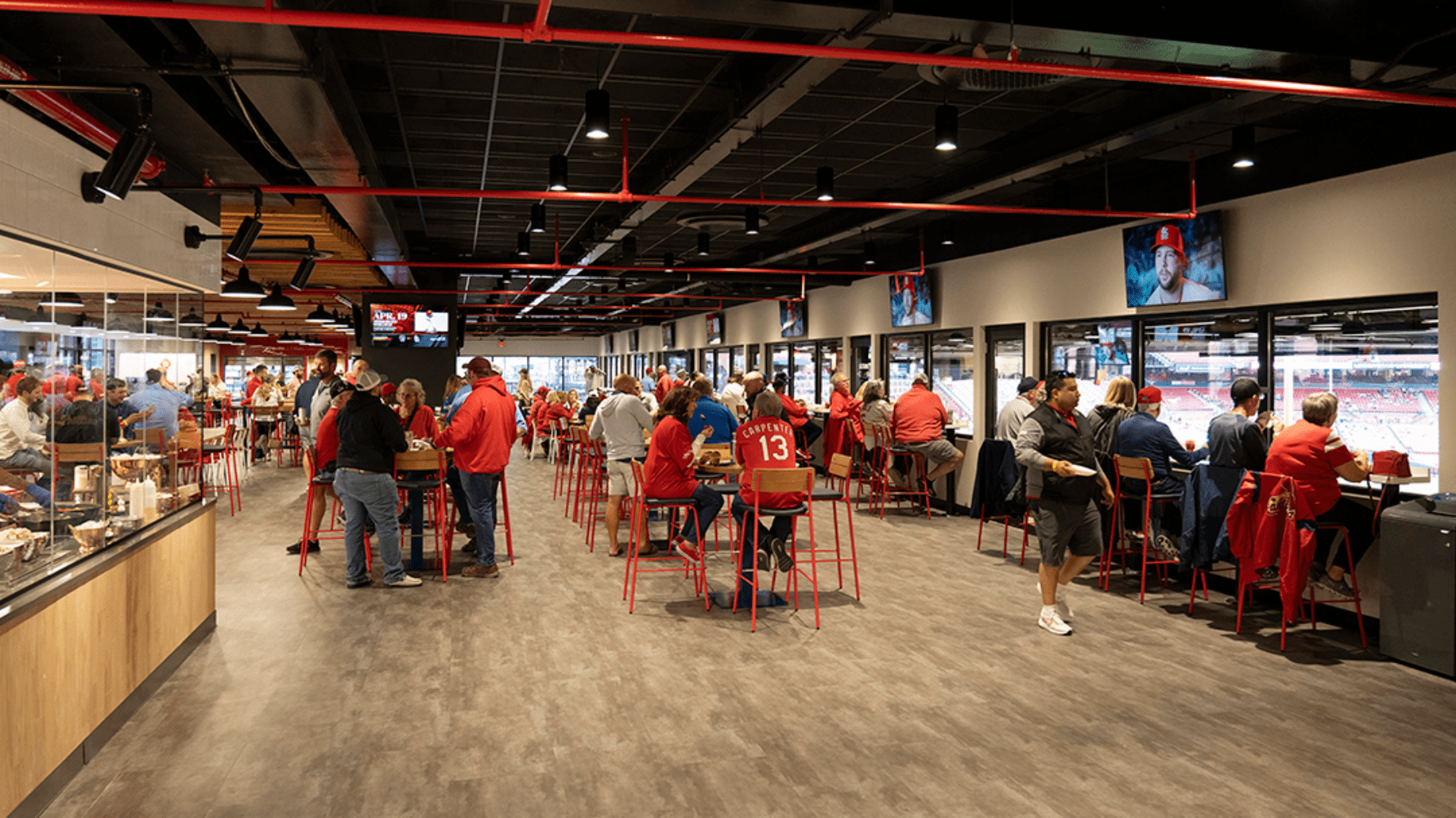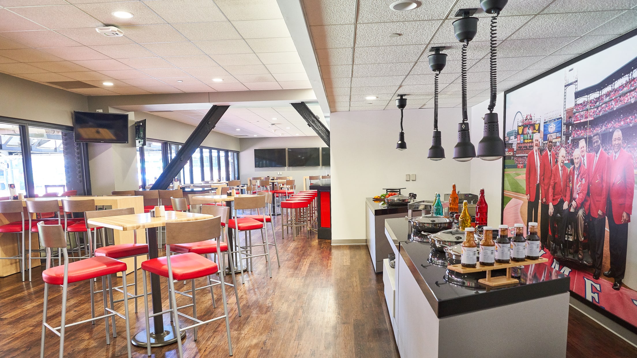 The Perficient Red Jacket Club brings an upscale sports club feel to a space that honors some of the Cardinals' greatest players.