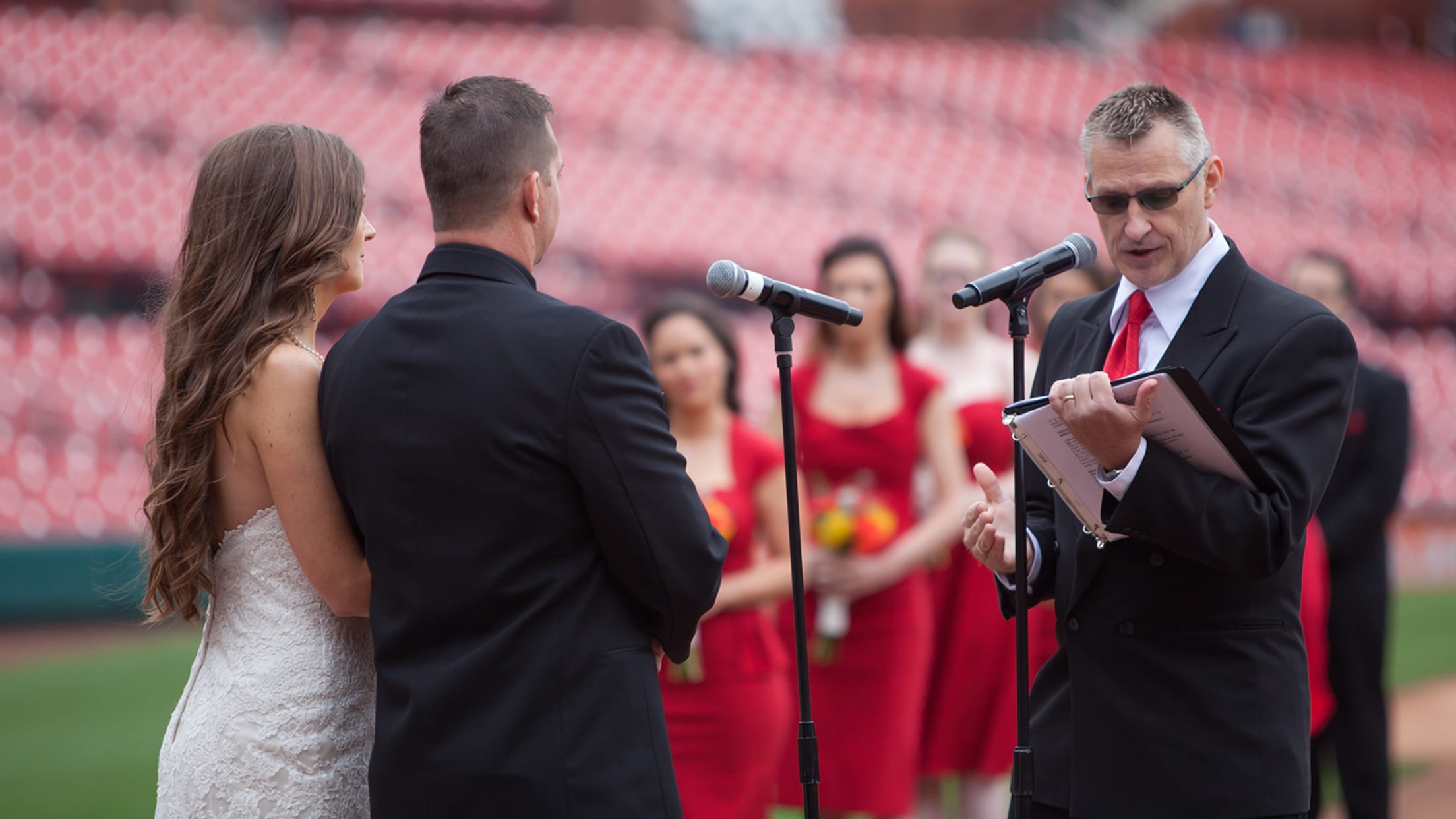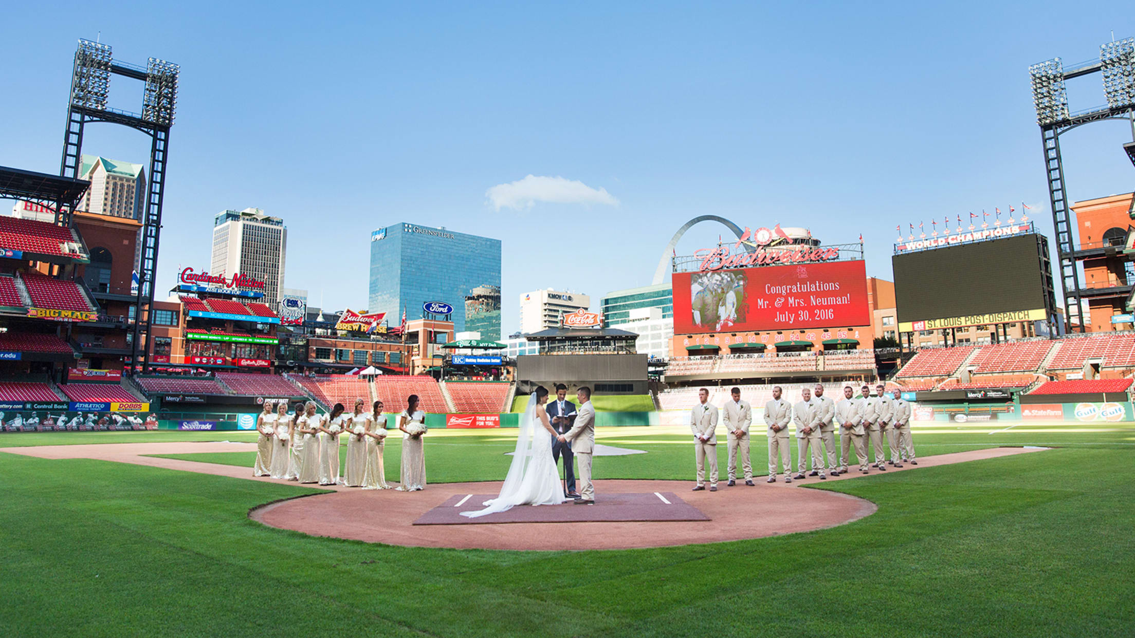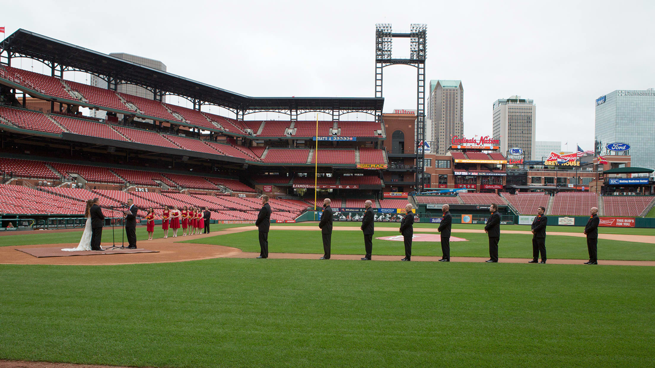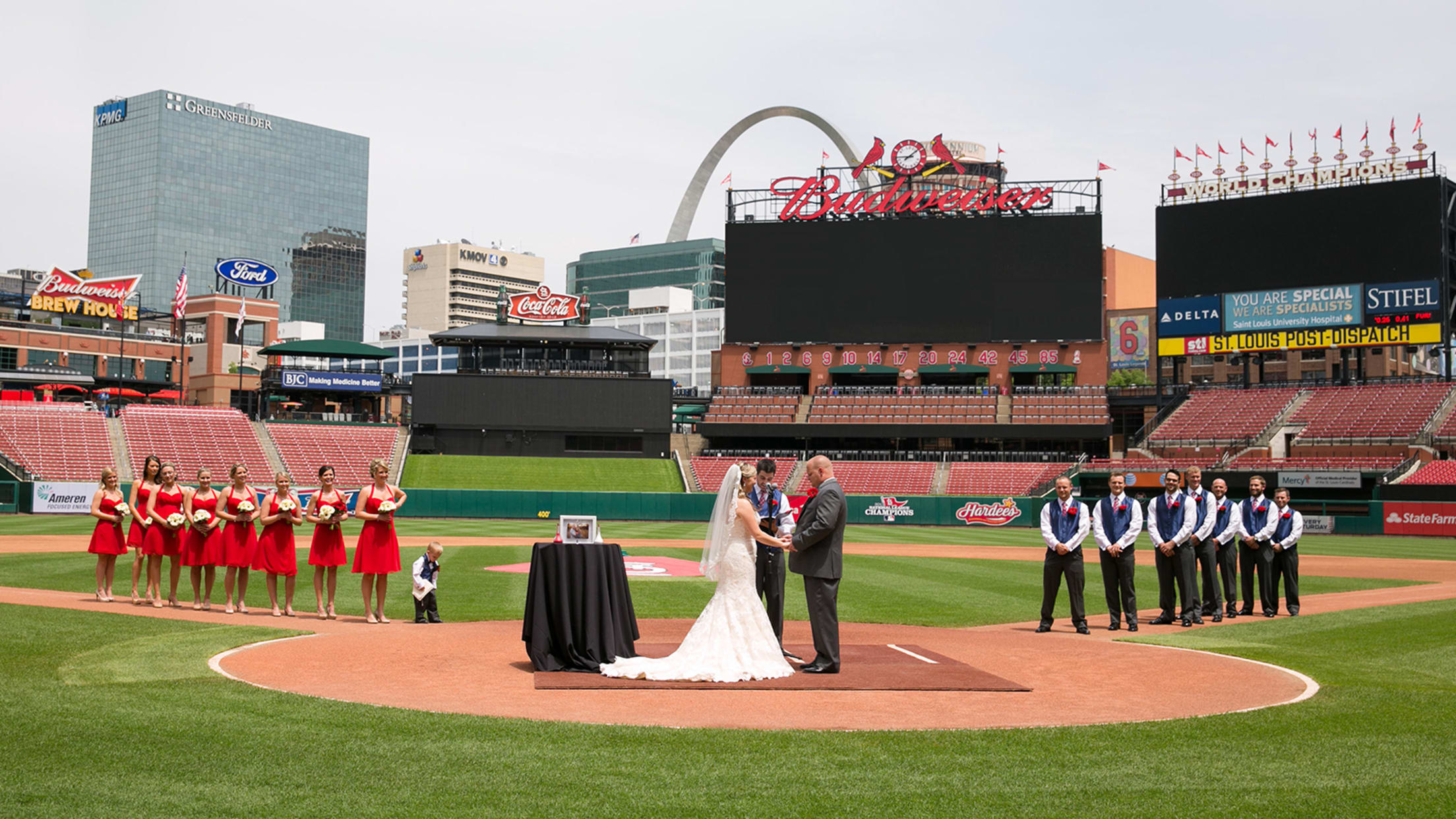 - Wedding Ceremony at home plate with guest seating in the green seats behind home plate